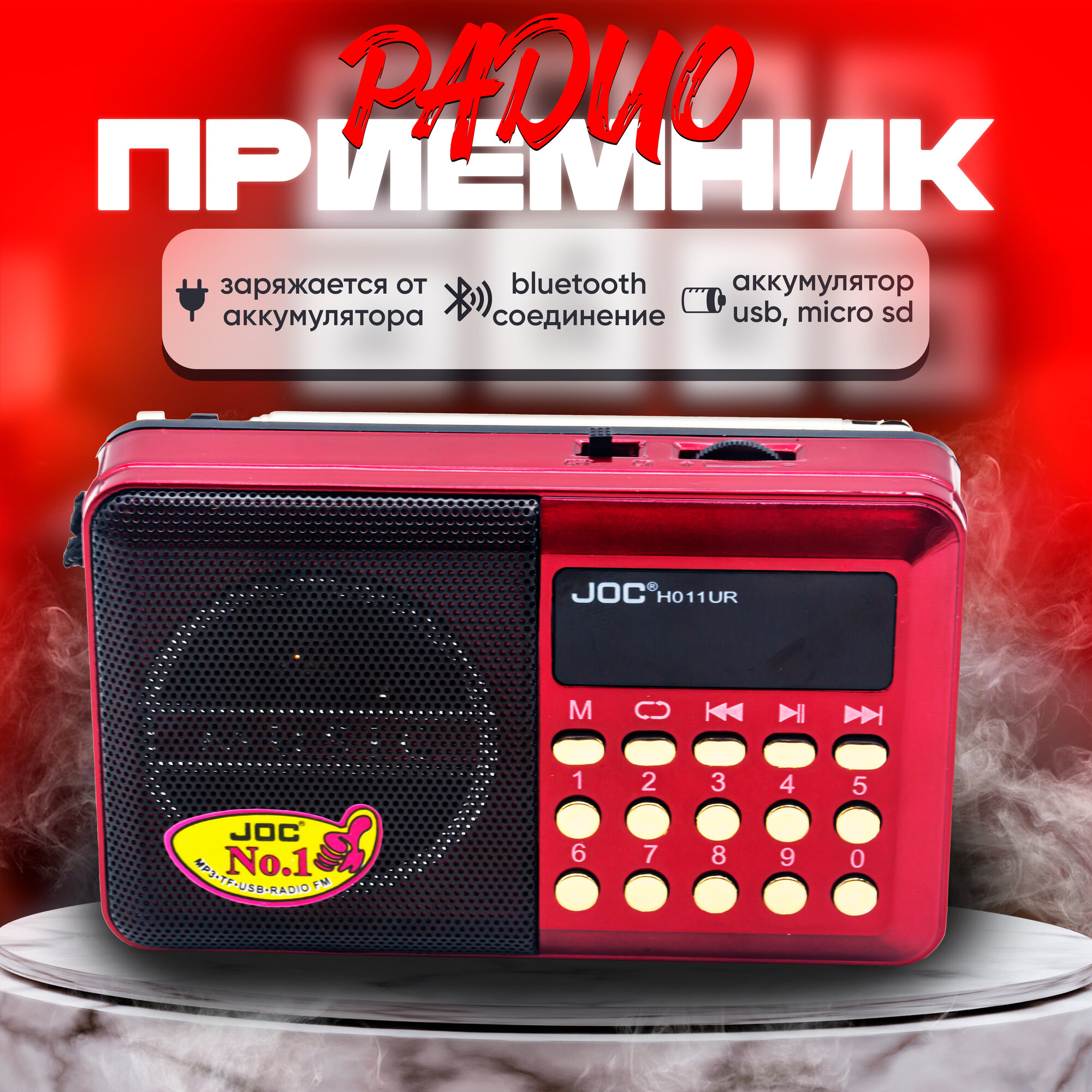 Радиоприемник JOC H011UR USB/SD/microSD/FM красный интересное: