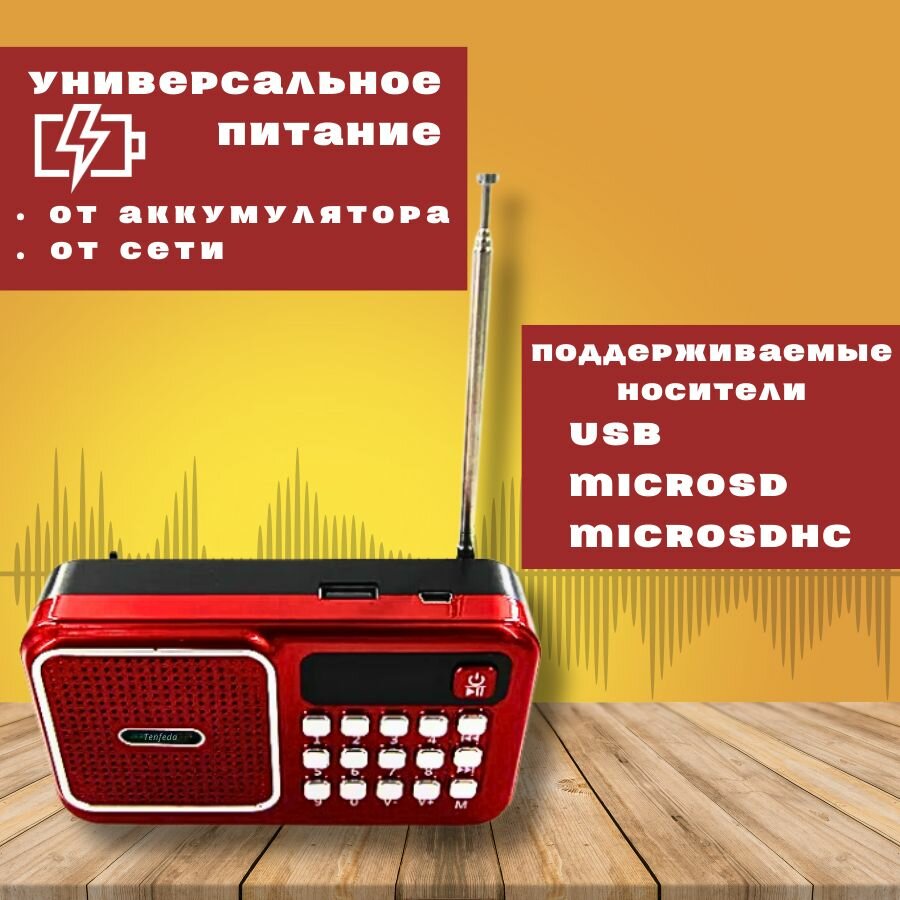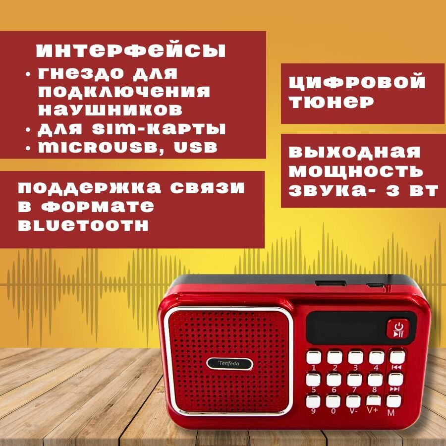 Радиоприемник цифровой T98ВТ (Radio FM, USB, microSD, Bluetooth (блютус), c питанием от сети и аккумулятора. интересное: