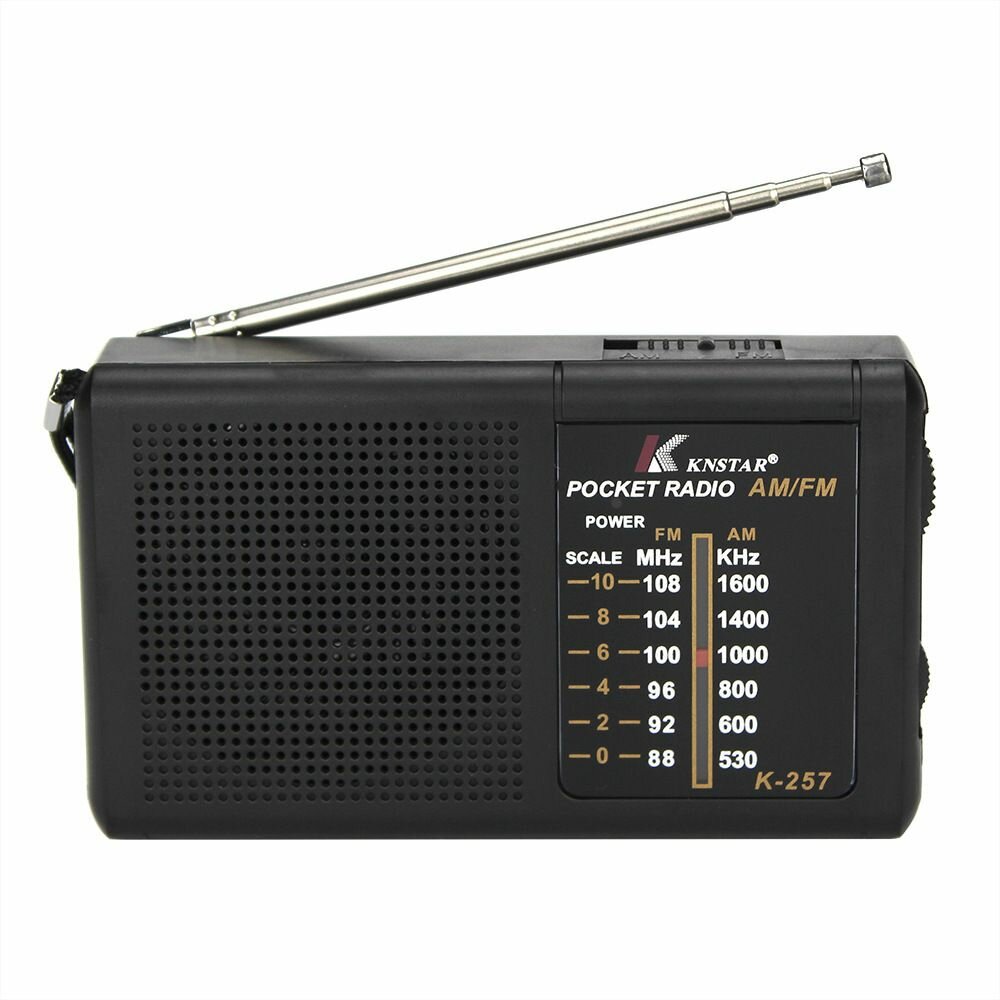 Радиоприёмник K-257 с приёмом FM/AM радиоволн, с разъёмом для подключения наушников.