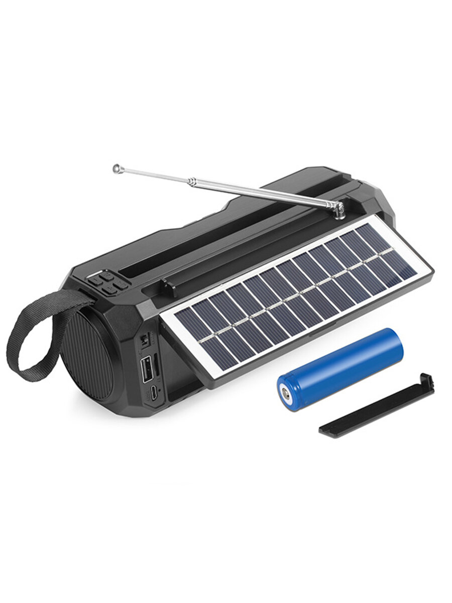 Беспроводная колонка с радиоприемником, аккумулятором и солнечной батареей, черный красный