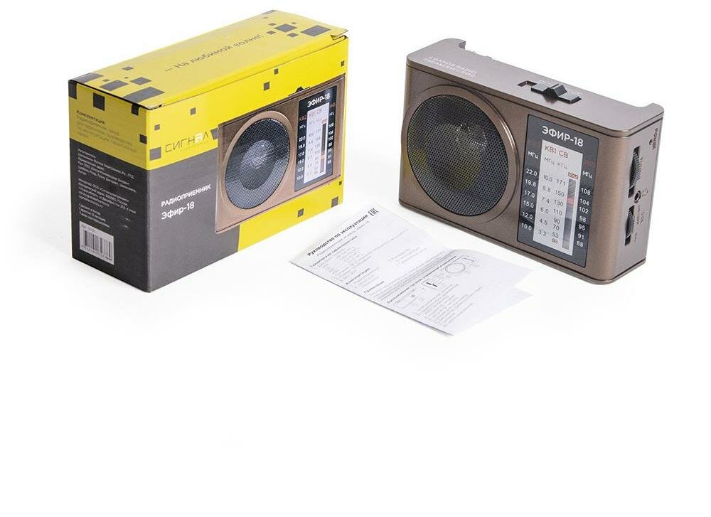 Ниже Вы можете прочитать отзывы на Радиоприемник портативный Сигнал Эфир-18 коричневый USB SD/microSD, ознакомится с подробными характеристиками, посмотреть интересные обзоры и фотографии на Радиоприемник портативный Сигнал Эфир-18 коричневый USB SD/microSD.