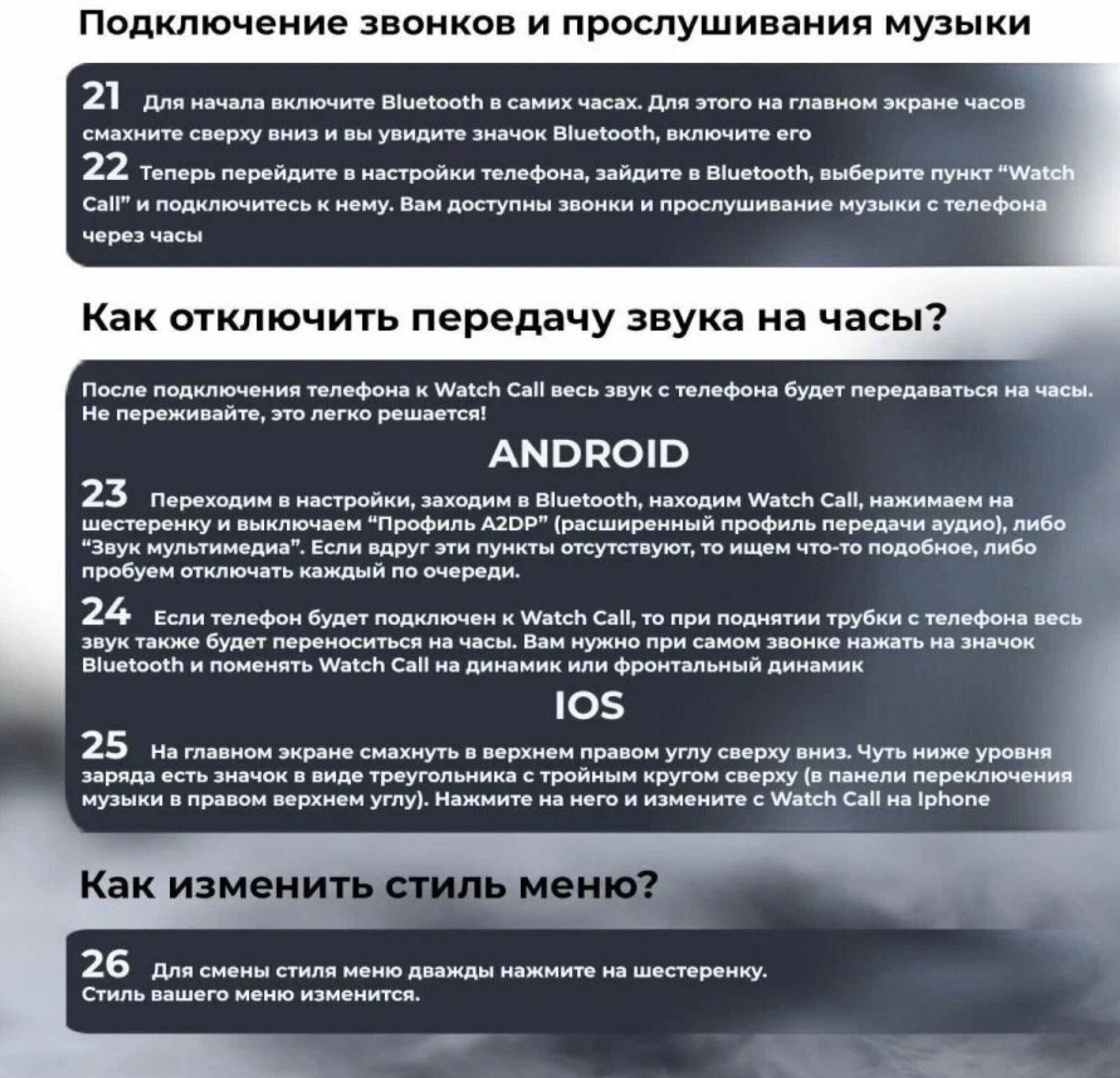 | Дополнительные функции | будильник / вибрация / динамик / дыхательная гимнастика / календарь / калькулятор / кнопка экстренного вызова / компас / микрофон / секундомер / таймер / шагомер |