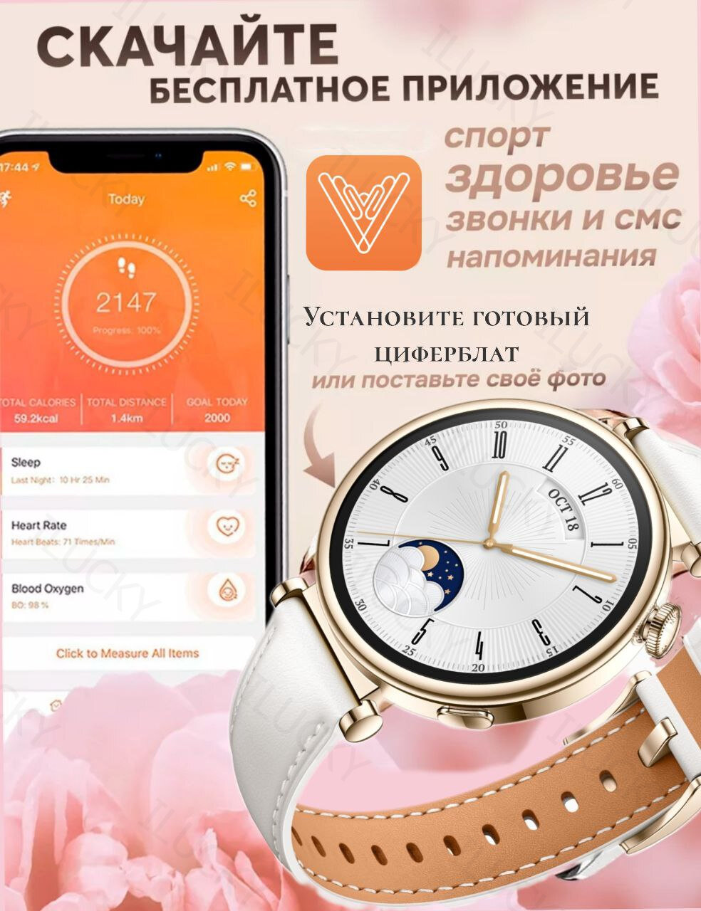 Купить Смарт часы женские круглые smаrt wаtch золотые / умные часы наручные с функцией звонка / смарт-часы белые/ 2 ремешка в комплекте