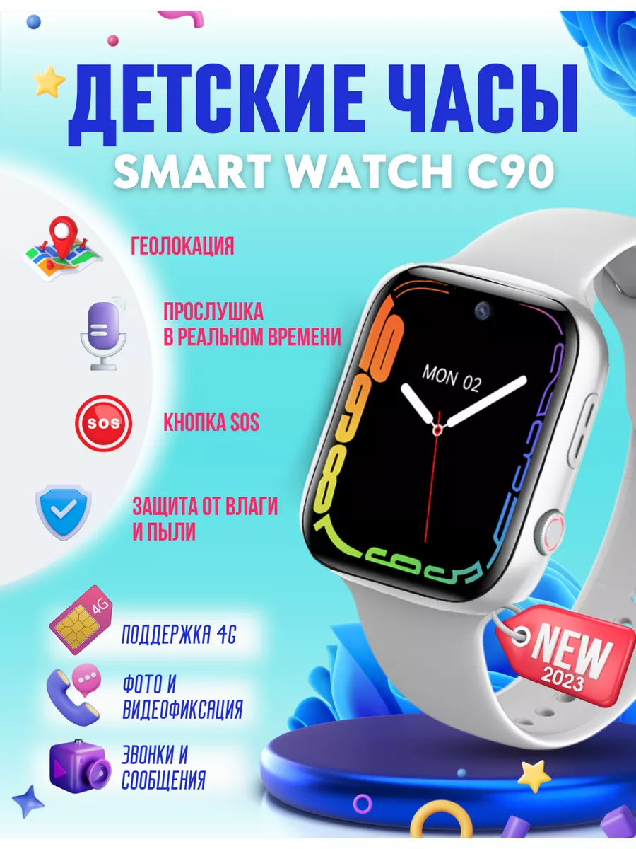Смарт часы, Умные Baby Smart Watch C90 с видеосвязью, Детские часы С90, GPS, Белый интересное: