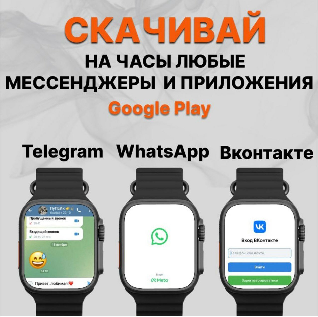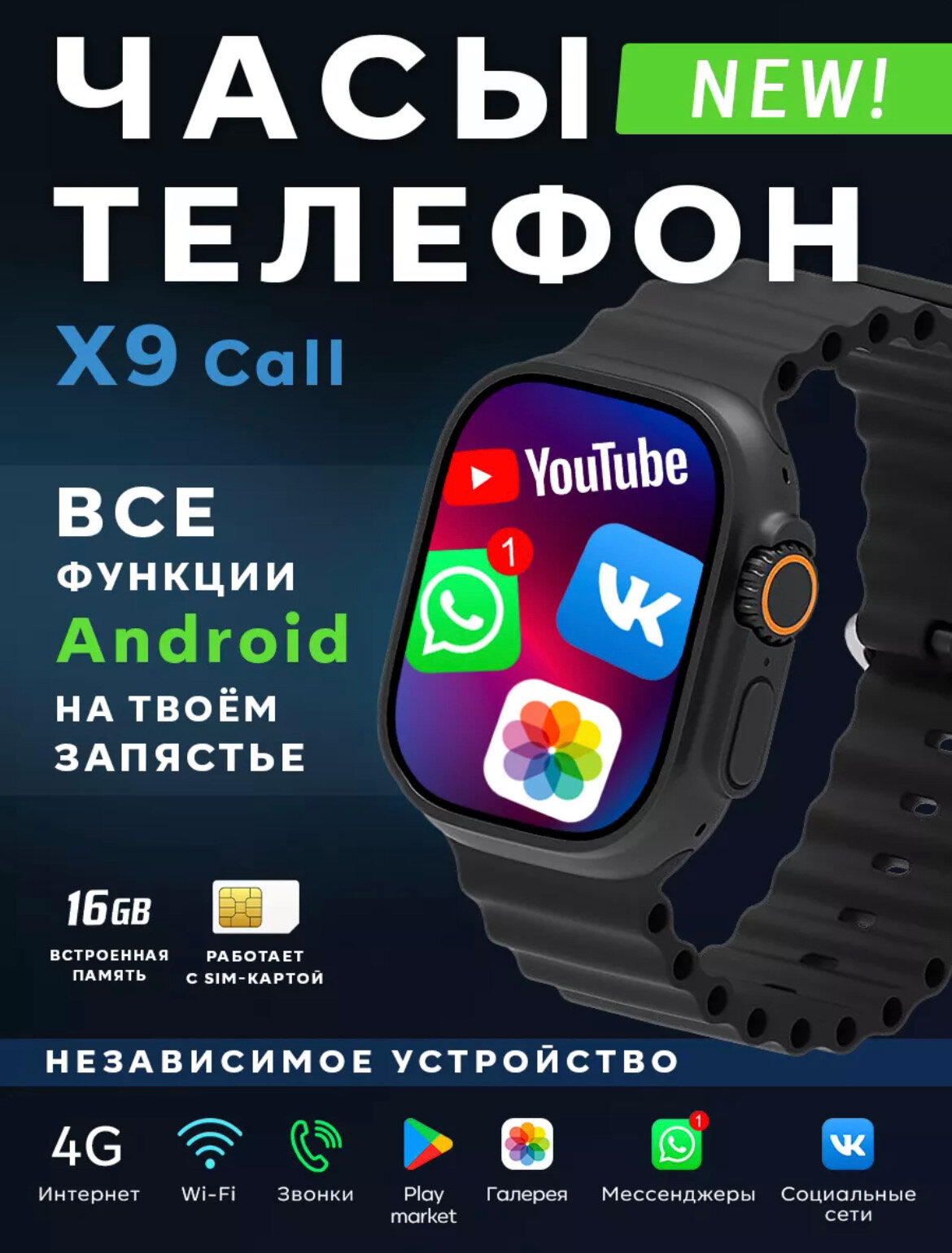 Смарт-часы с сим-картой x9 call W&O whatsapp / telegram / youtube , черные