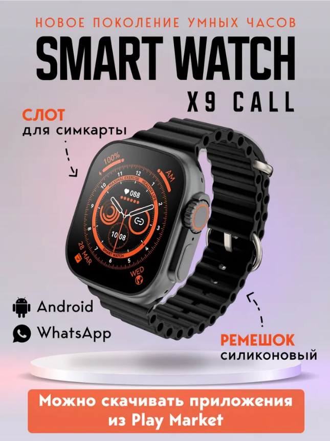 Смарт-часы с сим-картой x9 call W&O whatsapp / telegram / youtube , черные