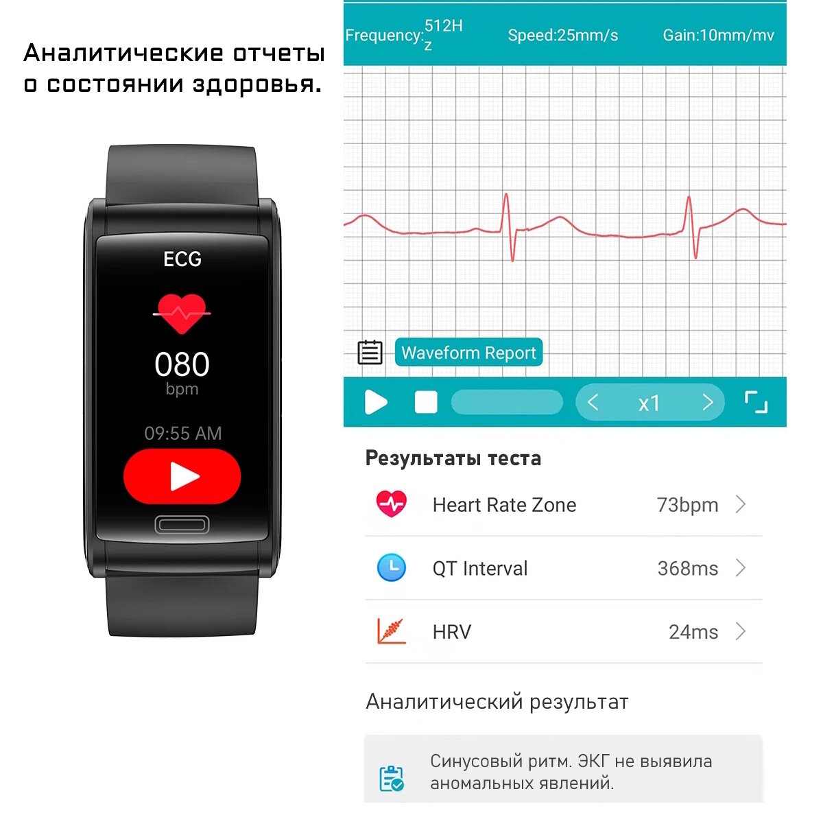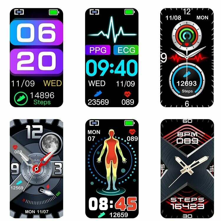 | Мониторинг | ЭКГ, водный баланс, калорий, пульса, сна, температуры тела, термометр, тонометр, уровня кислорода в крови, уровня сахара в крови, уровня стресса, физической активности, частоты дыхания |