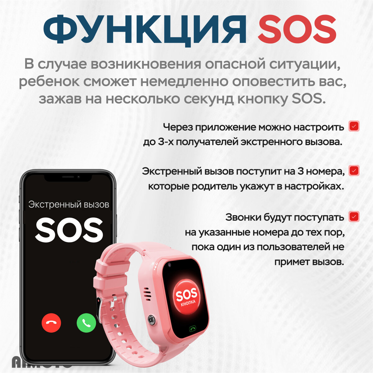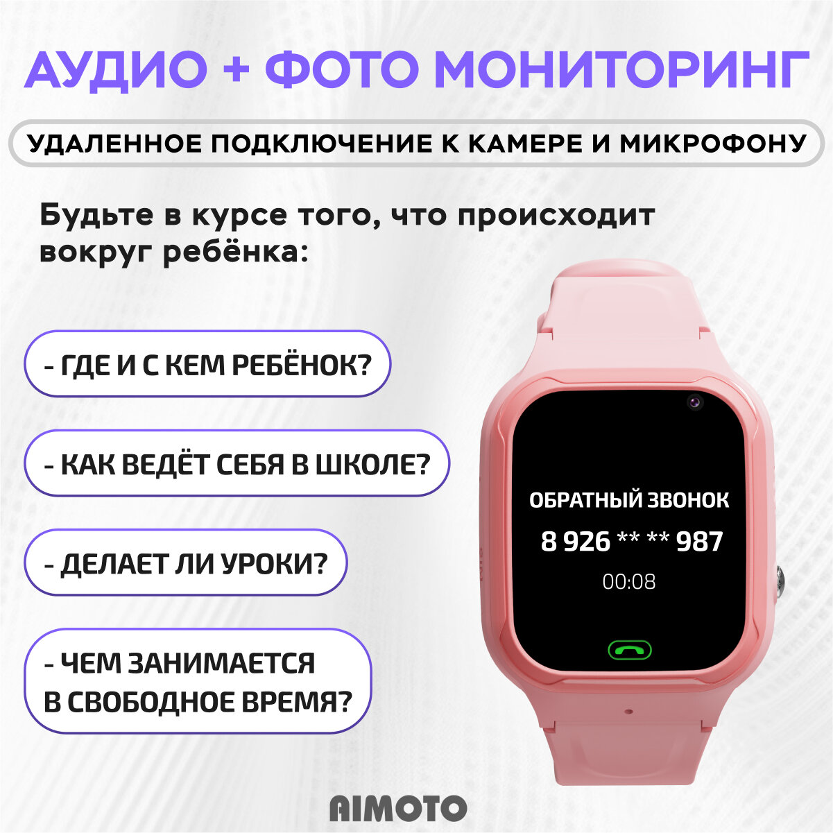 Смарт часы для детей 4G с GPS геолокацией, Aimoto Concept с видеозвонками, звонками, мощная батарея 670 мАч, смарт часы детские 4G с прослушкой, часы детские наручные для мальчиков и девочек, Розовый