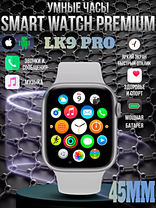 СохранитьСмарт часы LK9 PRO Умные часы PREMIUM Series Smart Watch AMOLED, iOS, Android, Bluetooth звонки, Уведомления, Серебристый интересное: