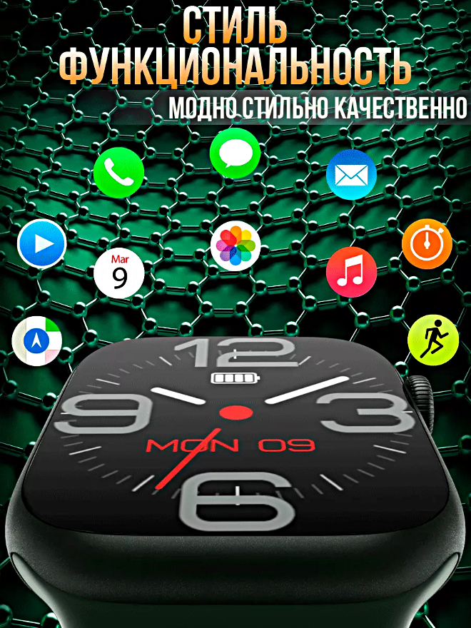 СохранитьСмарт часы LK9 PRO Умные часы PREMIUM Series Smart Watch AMOLED, iOS, Android, Bluetooth звонки, Уведомления, Зеленый интересное: