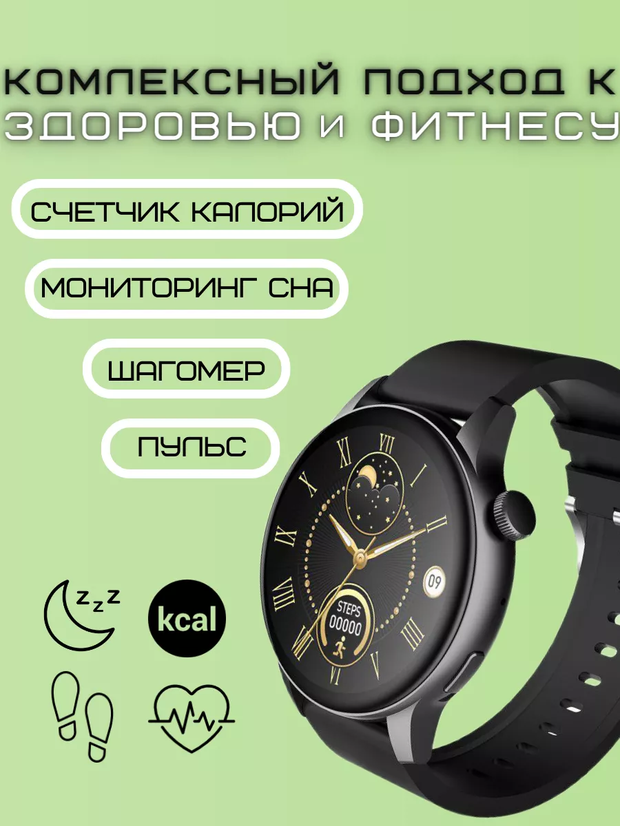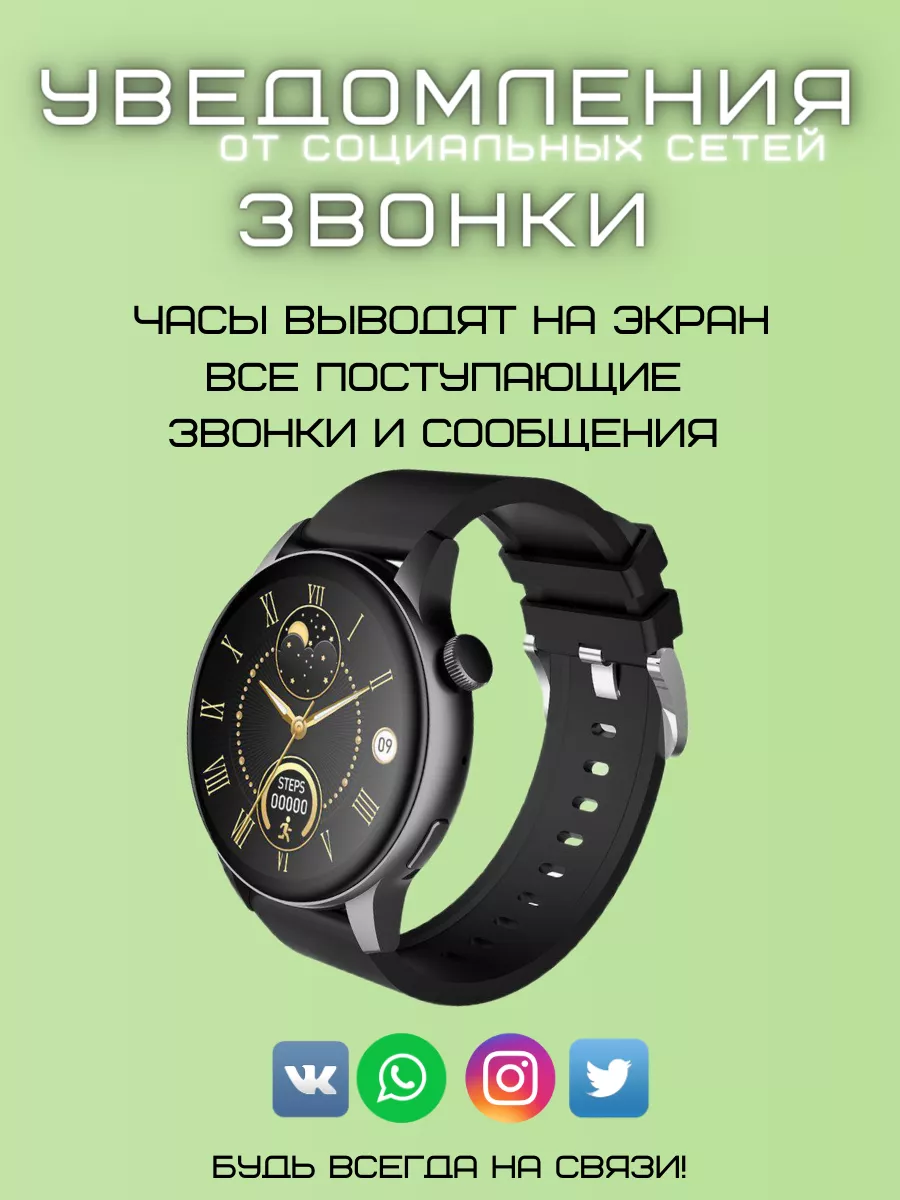 Умные часы круглые, Smart Watch A3 PRO Черные 2 ремешка, Flupsic