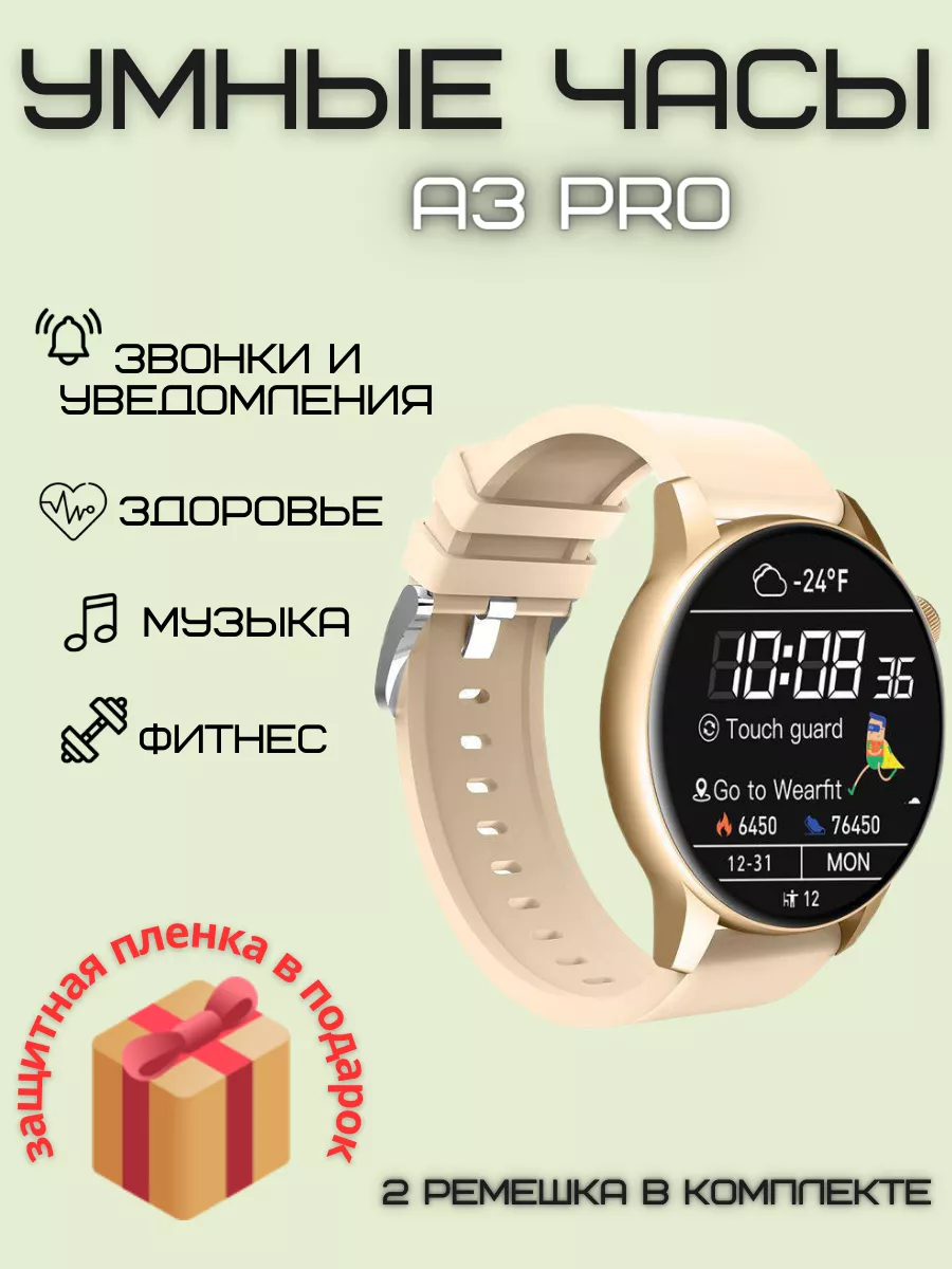 Умные часы круглые, Smart Watch A3 PRO Золотые 2 ремешка, Flupsic интересное: