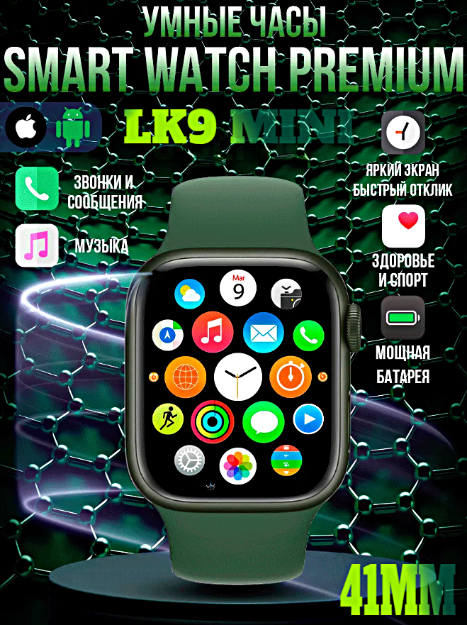 Ниже Вы можете прочитать отзывы на Смарт часы LK9 MINI Умные часы 41MM PREMIUM Series Smart Watch AMOLED, iOS, Android, Bluetooth звонки, Уведомления, Зеленый, ознакомится с подробными характеристиками, посмотреть интересные обзоры и фотографии на Смарт часы LK9 MINI Умные часы 41MM PREMIUM Series Smart Watch AMOLED, iOS, Android, Bluetooth звонки, Уведомления, Зеленый.