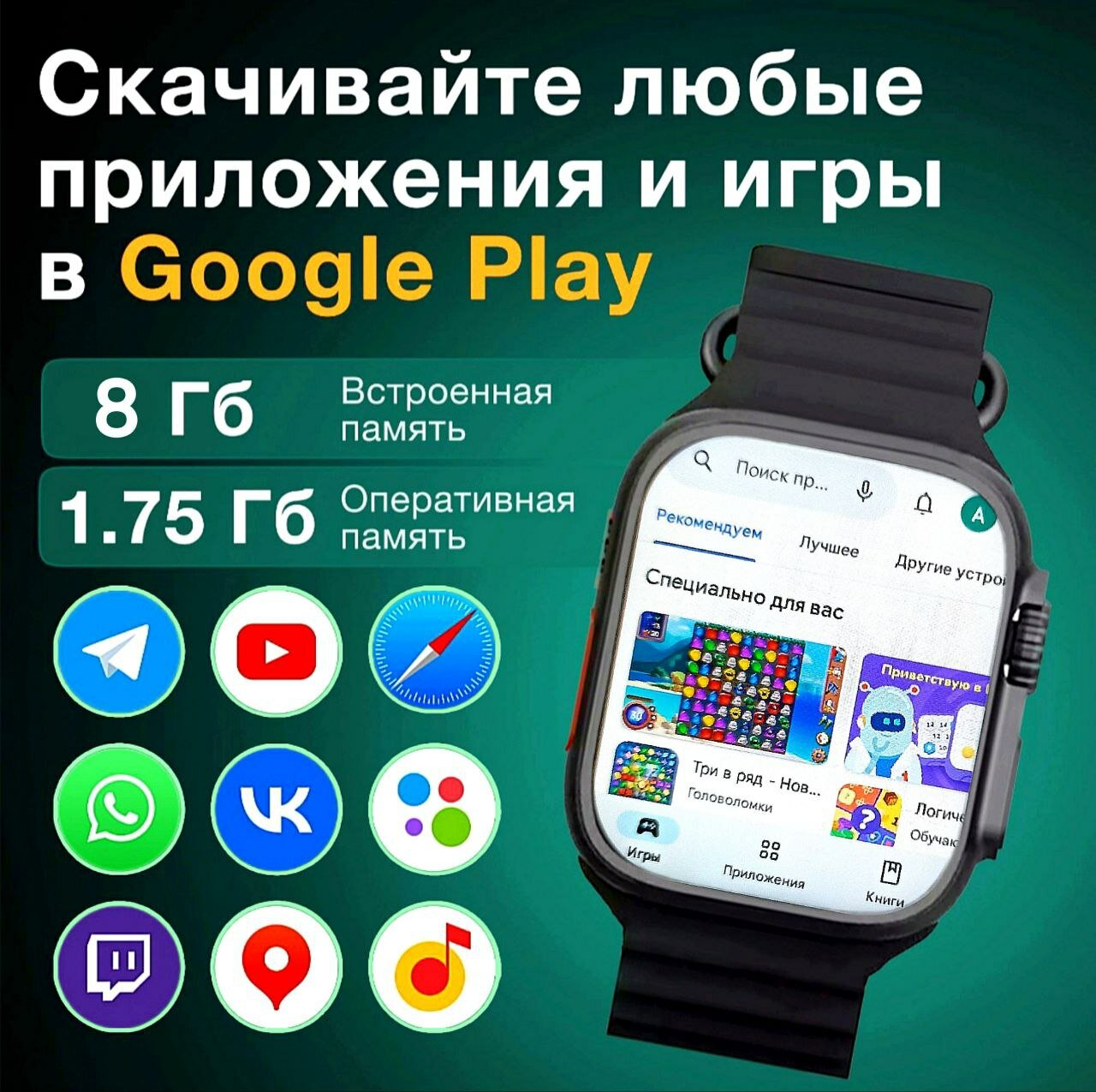 Смарт часы X9 Call Android с сим картой / Умные smart watch 49mm / 2 ремешка в комплекте / черный интересное: