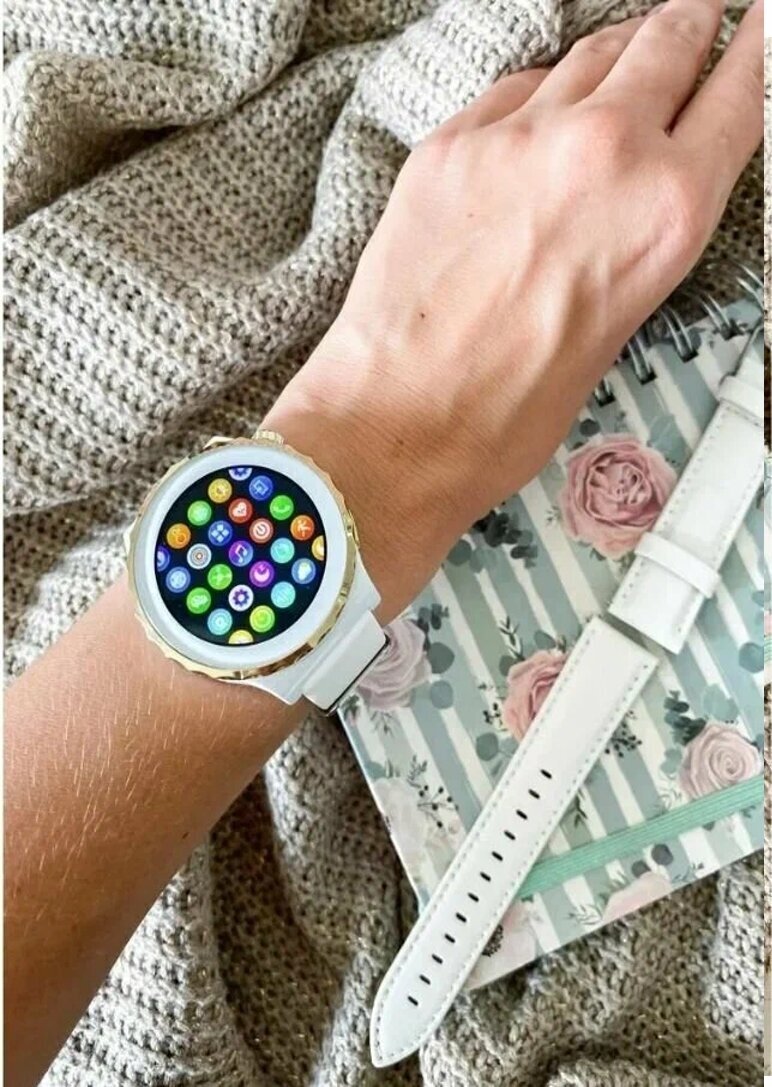 Смарт-часы круглые женские наручные умные X6 (2 ремешка) Серебро интересное: