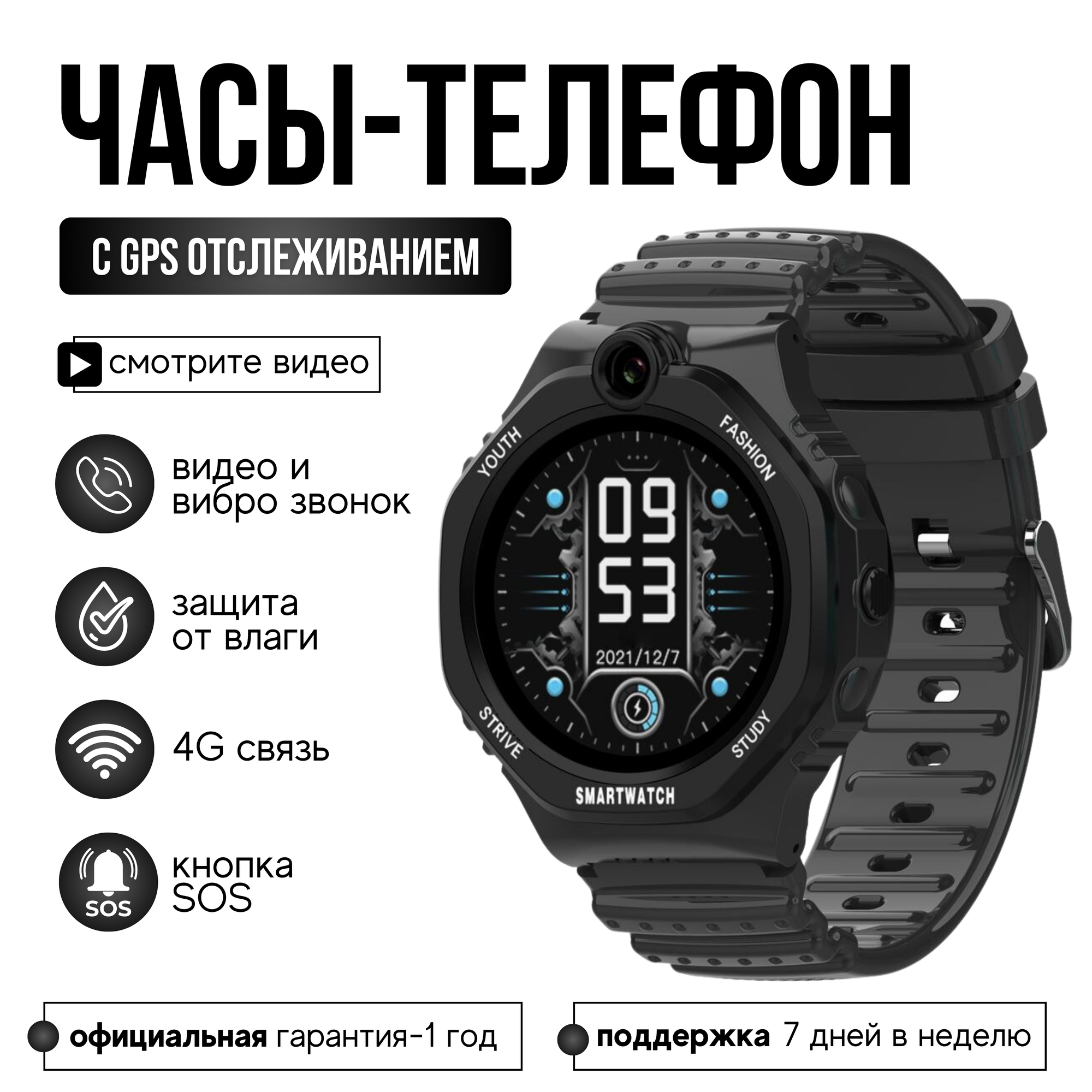 Wonlex GPS часы Wonlex KT26S 4G c видеозвонком и кнопкой SOS (Черный) интересное: