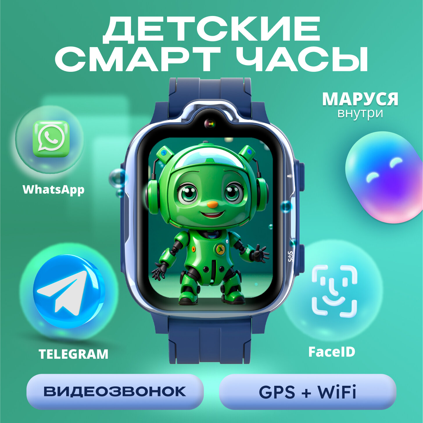 Cмарт часы детские с Ватсапом, Марусей, Телеграм, Aimoto Grand, умные часы для детей с GPS 4G, для ребенка с прослушкой, для мальчика, Синий