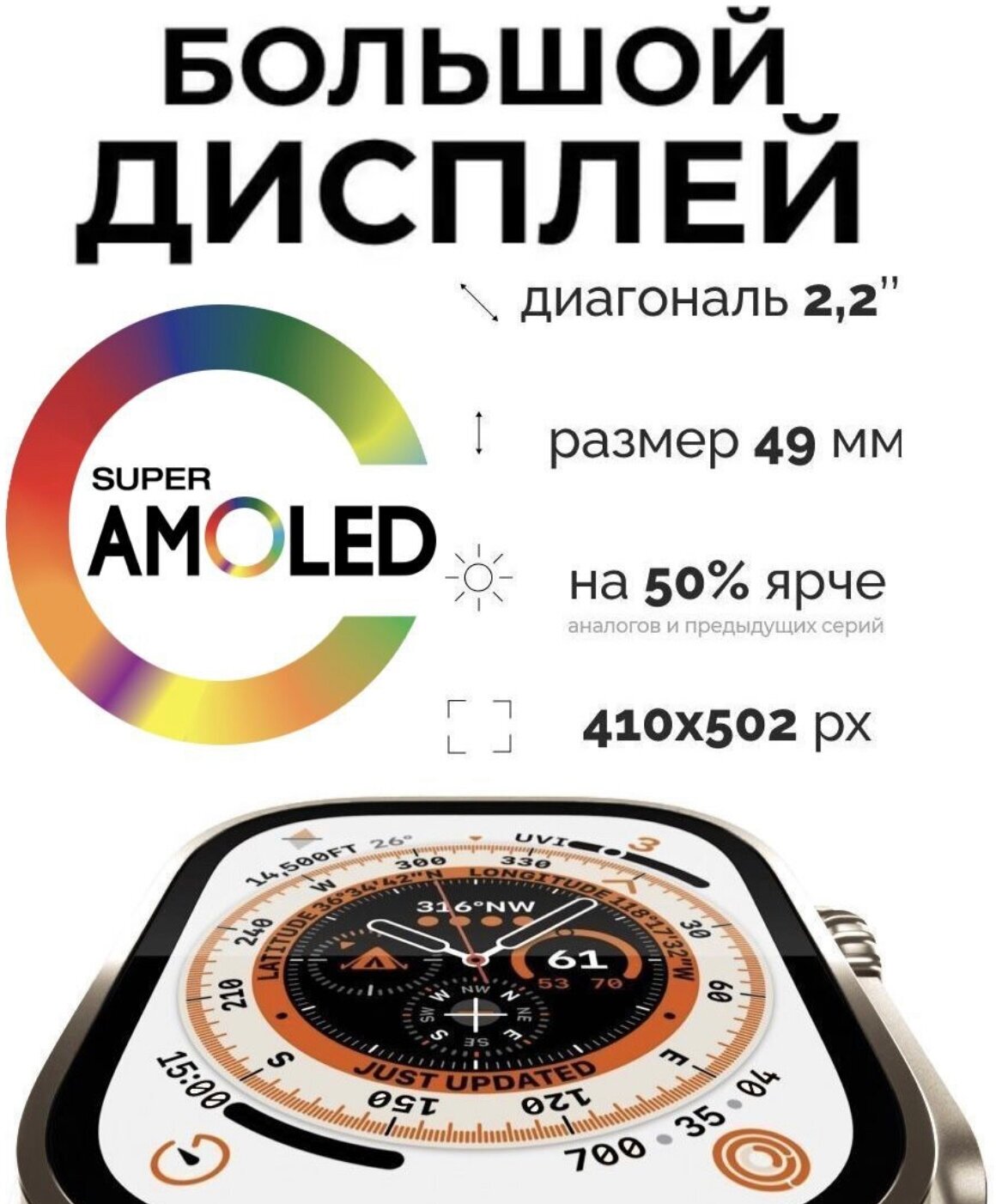 Смарт часы Х9 ULTRA Amoled экран / Умные часы Smart Watch 49mm / 2 ремешка / оранжевые интересное: