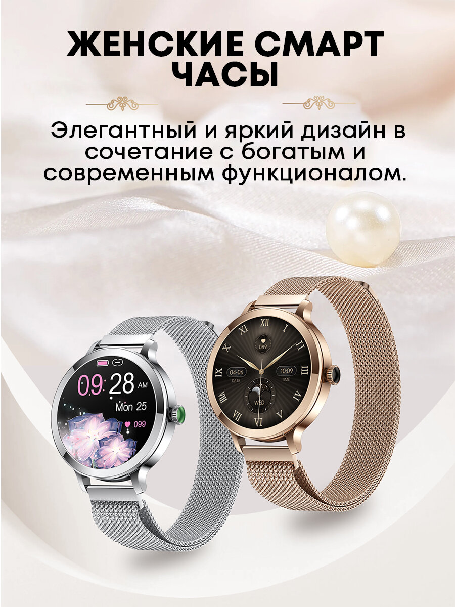 Kingwear Женские смарт часы Amoled NX7 с bluetooth звонком (Серебристый) интересное: