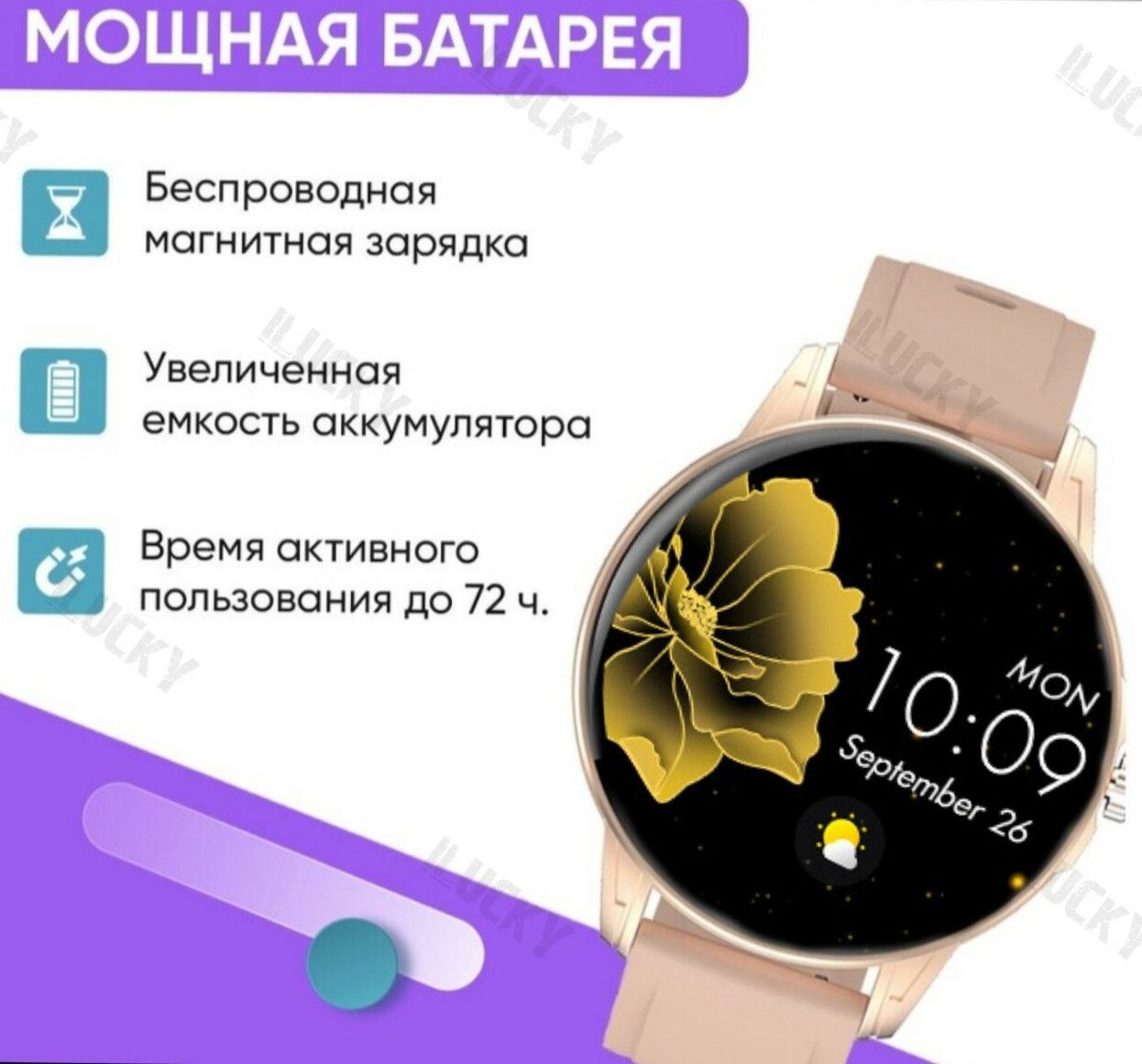 | Особенности | воспроизведение аудио / магнитная зарядка / поиск смартфона / поиск часов |