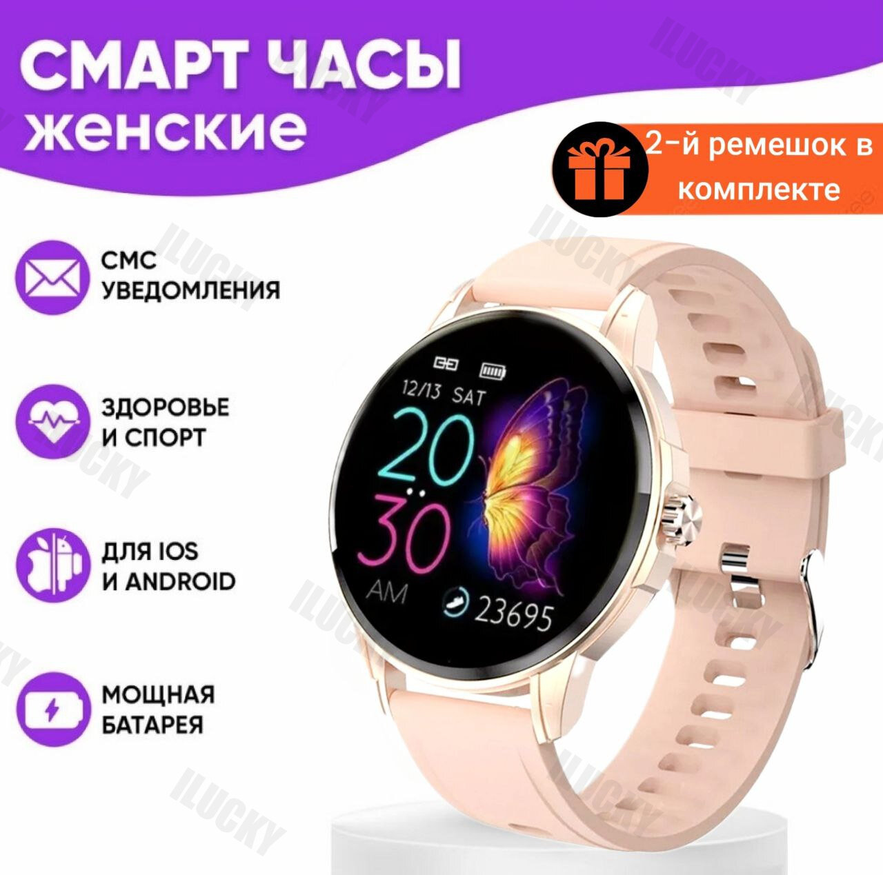 Cмарт часы женские W02, Умные круглые наручные smart watch, 2 ремешка в комплекте, золотые интересное: