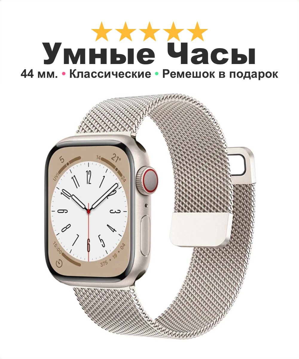 Купить Умные смарт часы 8 серия для девушки парня Smart Watch 8, оповещения из мессенджеров большой экран металлический ремешок в подарок, белые