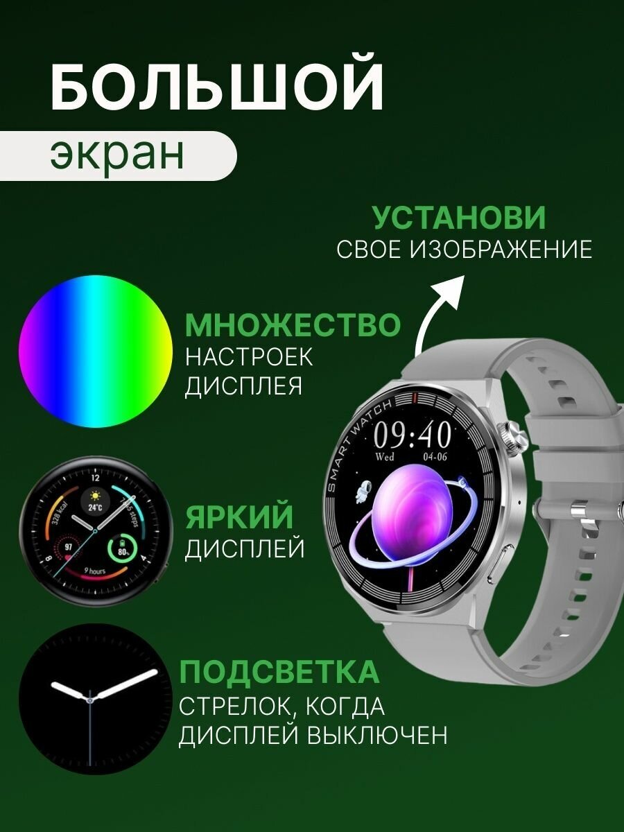 Умные часы GT3 MAX PREMIUM Smart Watch 46MM, iOS, Android, 1.45 OLED, 3 Ремешка, Bluetooth звонки, Уведомления, звонки, Серебро, VICECITY интересное: