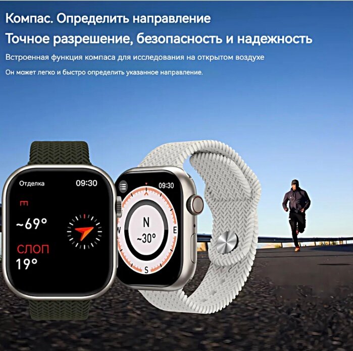 Умные часы HK9 Pro Max Plus, Смарт часы HK9 Pro Max+, 47mm, iOS, Android, Bluetooth звонки, Уведомления, Шагомер,AMOLED, Зеленый