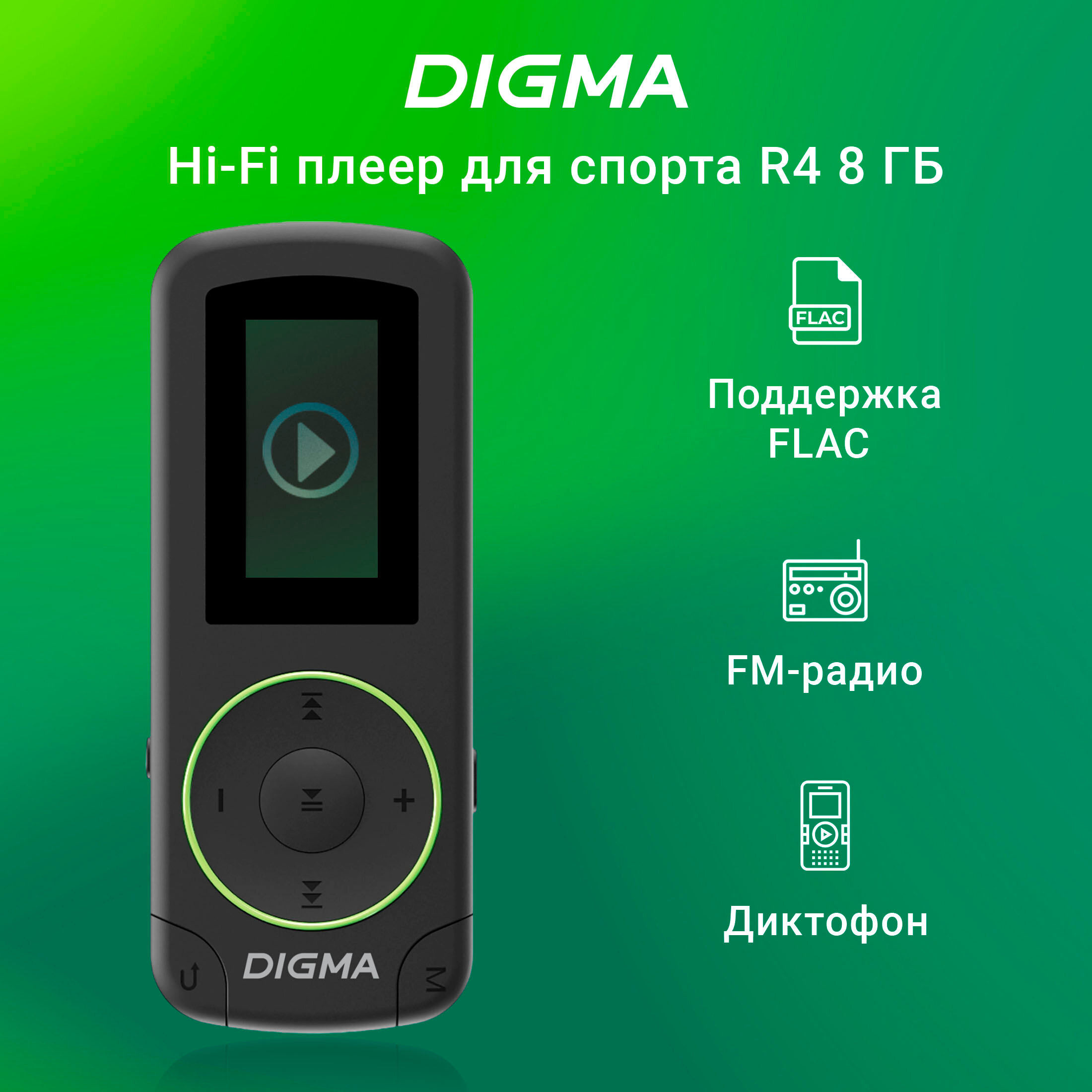 mp3 плеер Digma R4 8ГБ черный интересное:
