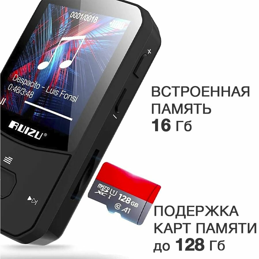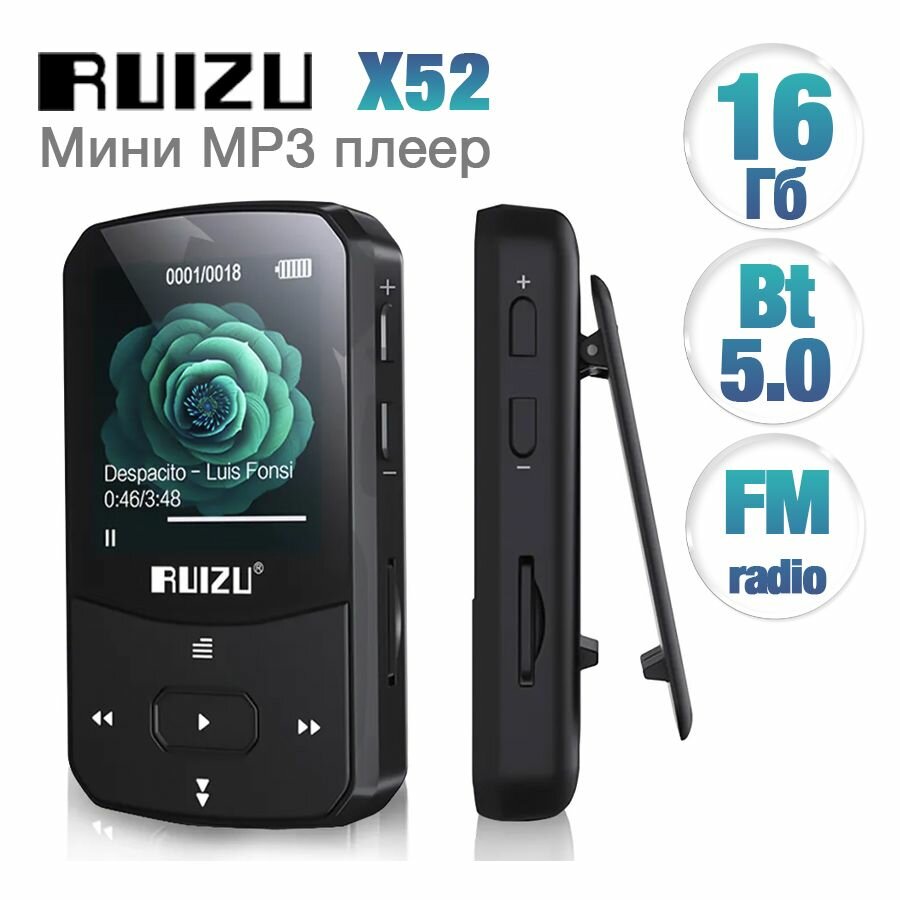 Спортивный HiFi/MP3 плеер Ruizu X52, 16 Гб черный интересное: