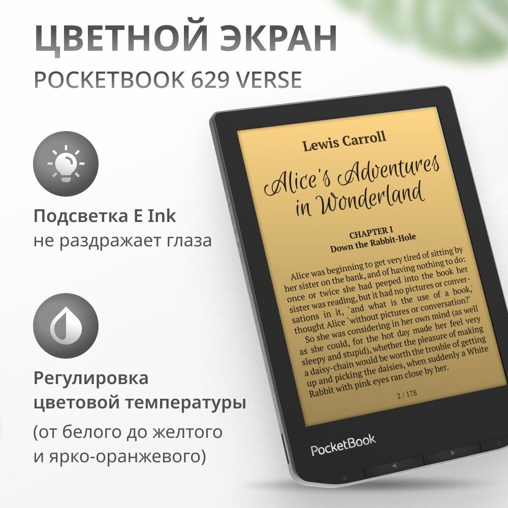 Электронная книга PocketBook 634 Verse Pro с модулем Wi-Fi и сенсорным экраном, встроенной памятью 16 гб