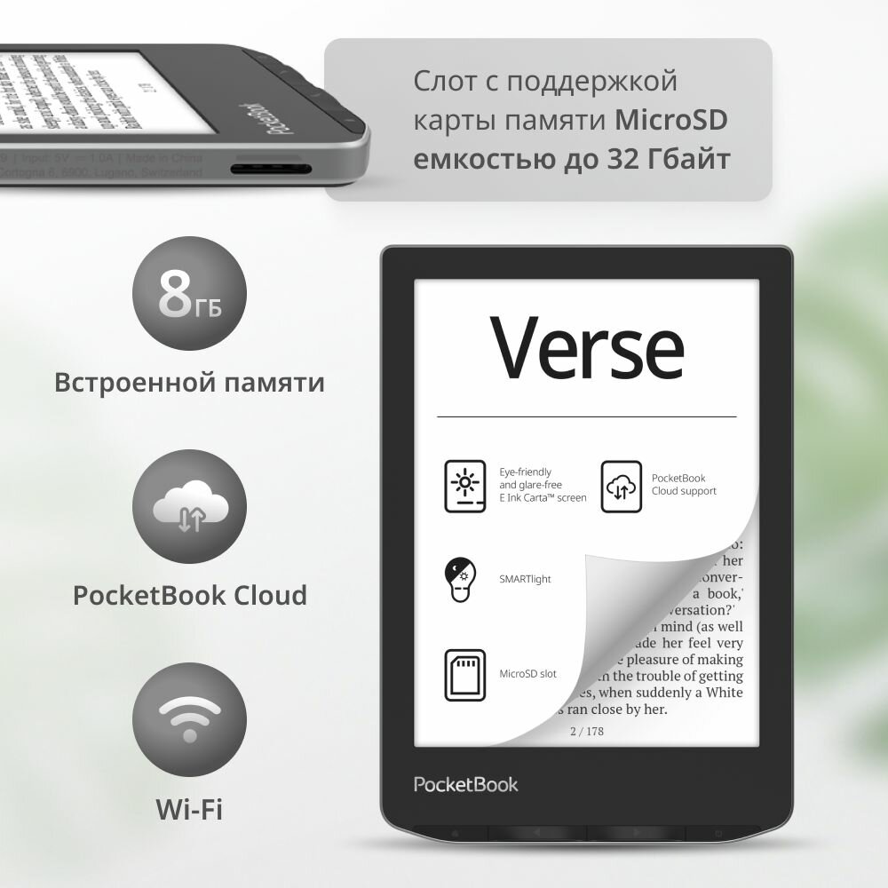 6"Электронная книга Pocketbook Verse PB629 (PB629-M-WW), Mist Grey