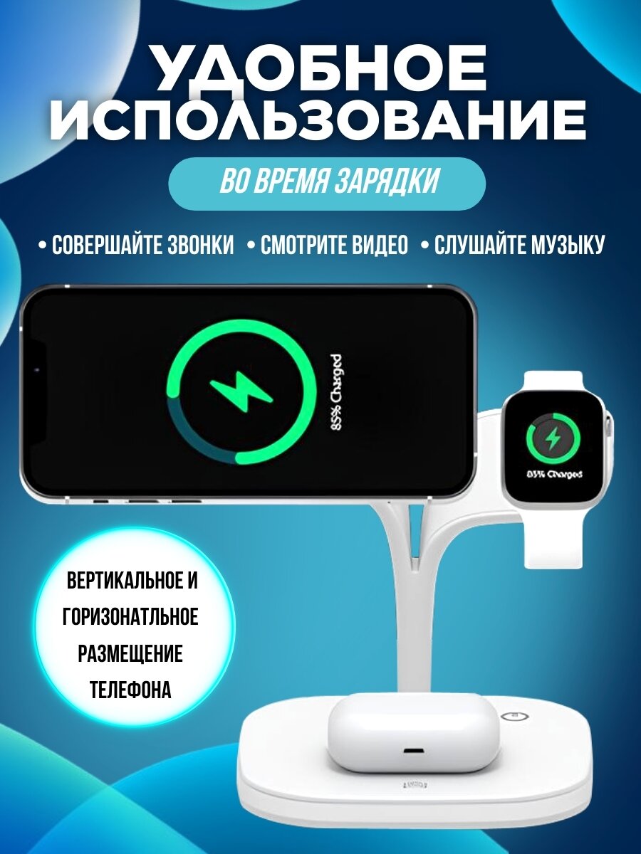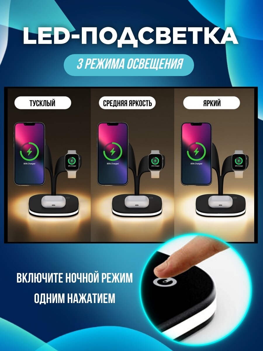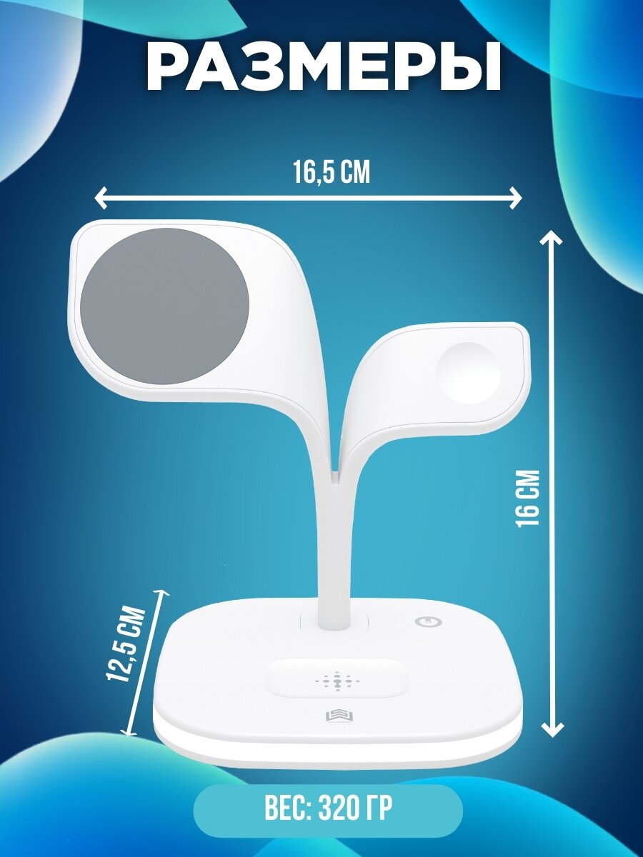 Док-станция для беспроводной зарядки 5 в 1 с подсветкой, белая интересное: