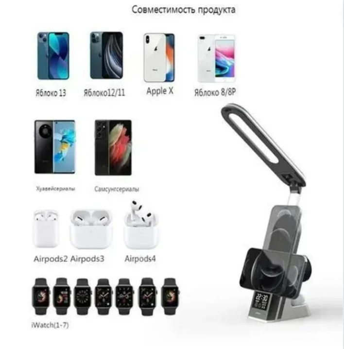 Док-станция 7 в 1 с беспроводной зарядкой лампа. интересное: