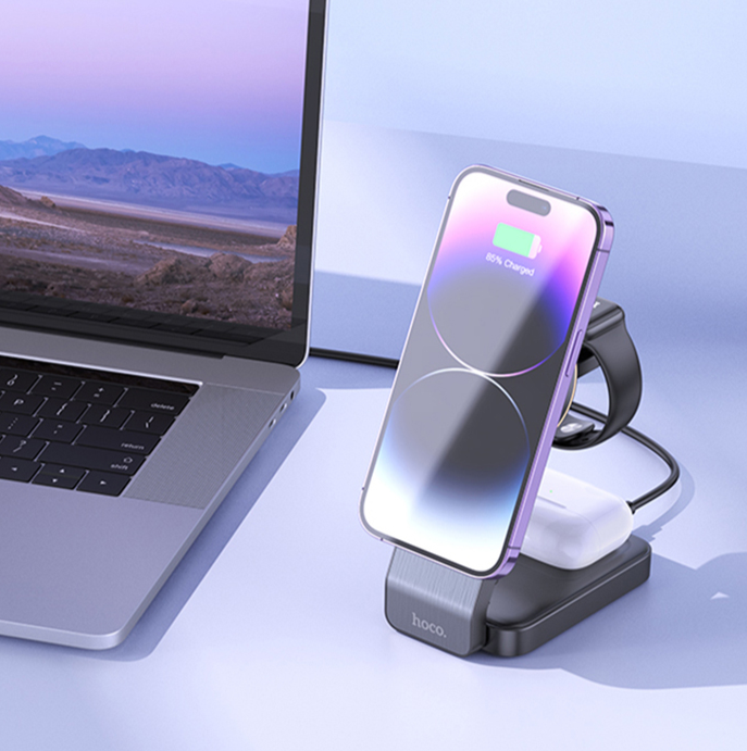 Купить Складная зарядная станция для iPhone / Airpods / Apple Watch Черная