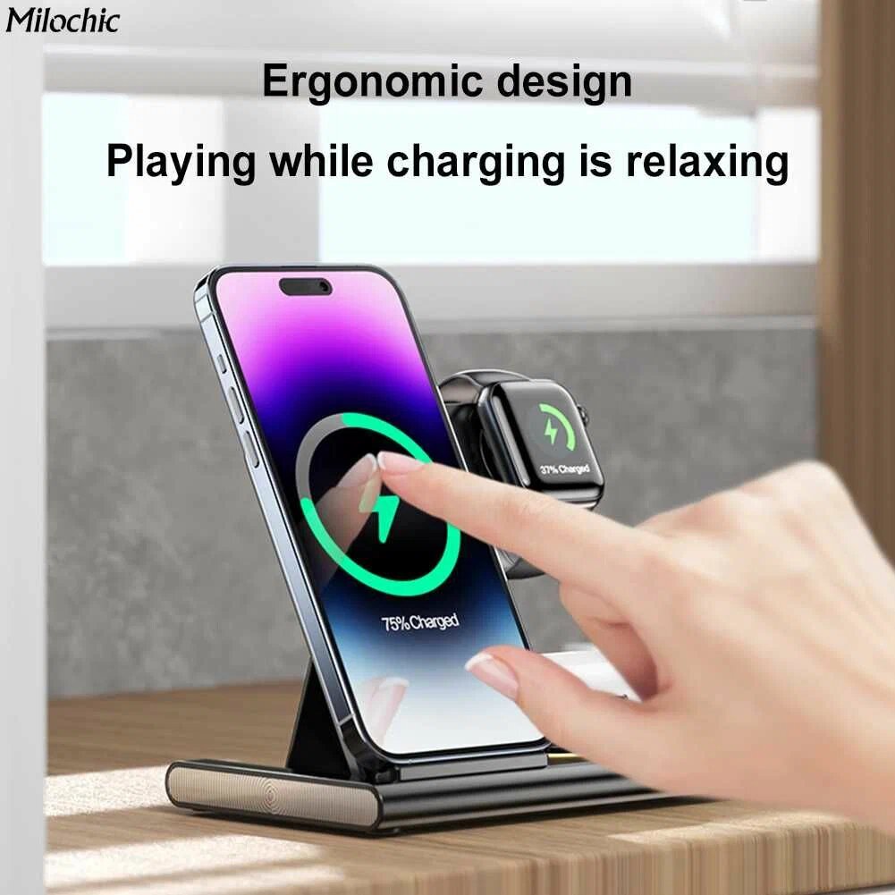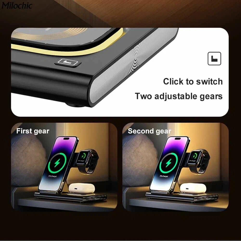 Беспроводная зарядная станция 4 в 1 Rapture Magnetic A-80 (iPhone+Apple Watch+AirPods(или смарфон)+Ночник), черная интересное: