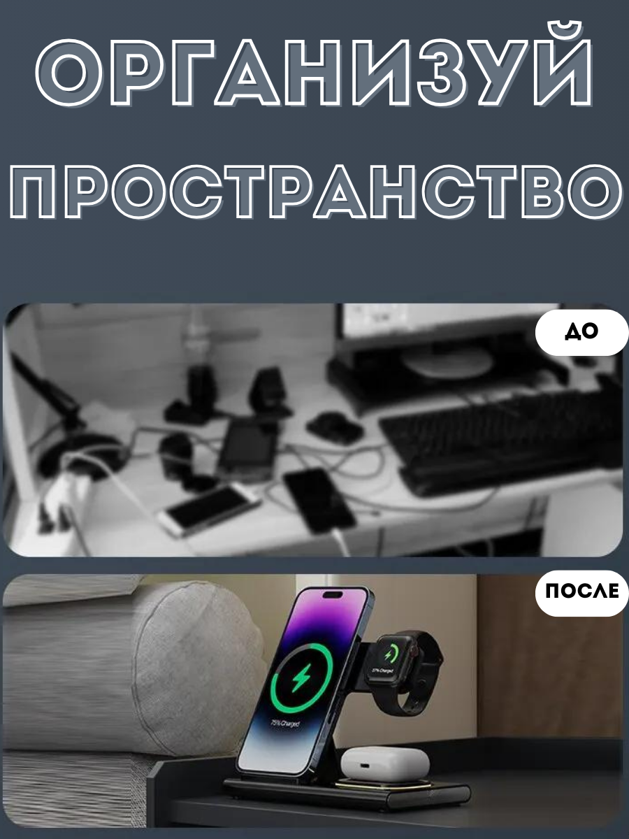 Купить Беспроводная док-станция 3-в-1 для Apple Watch, AirPods и телефонов