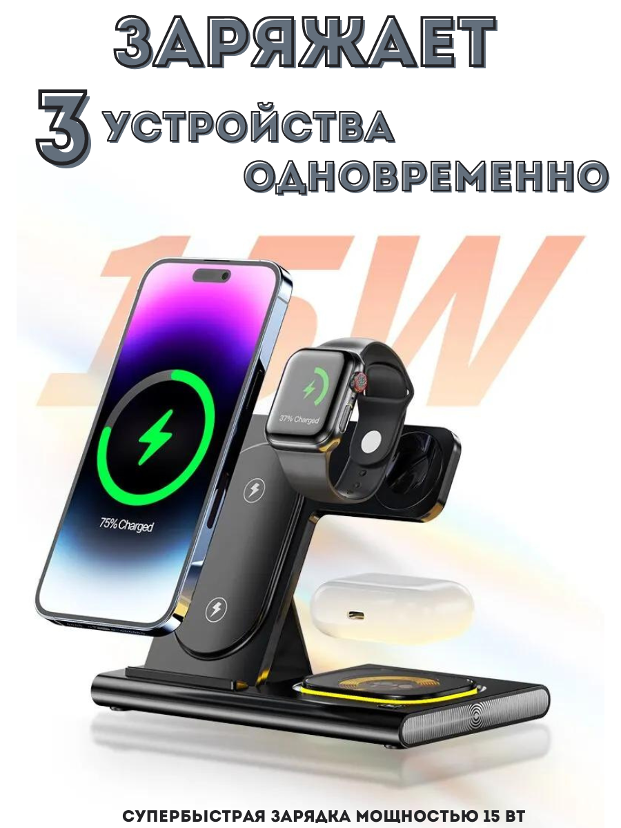 Купить Беспроводная док-станция 3-в-1 для Smart Watch, наушников и телефонов