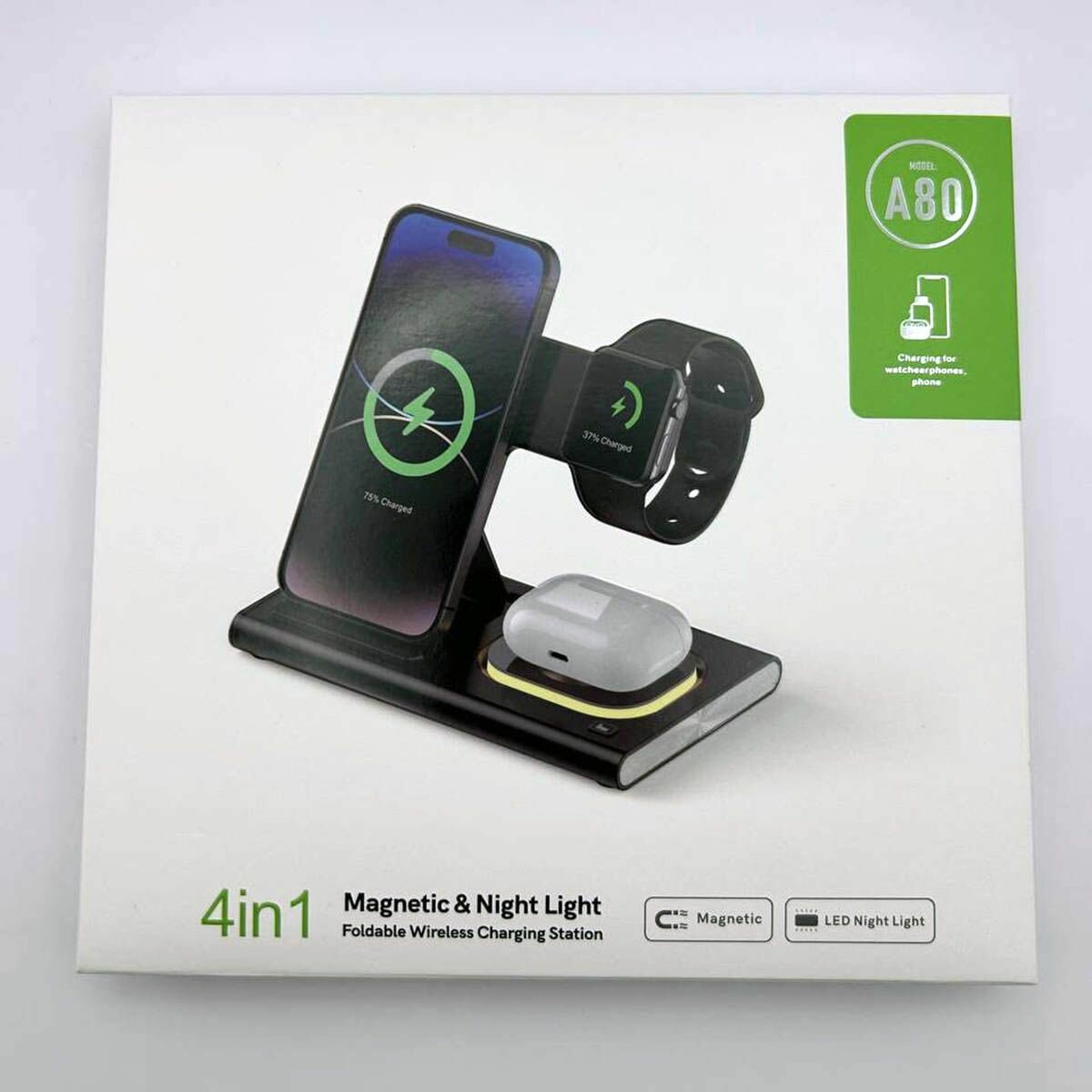 Купить Беспроводное зарядное устройство док - станция 4 в 1 для смартфонов Apple Iphone и Android, Samsung, Xiaomi, наушников Air Pods и часов Apple Watch. Цвет белый