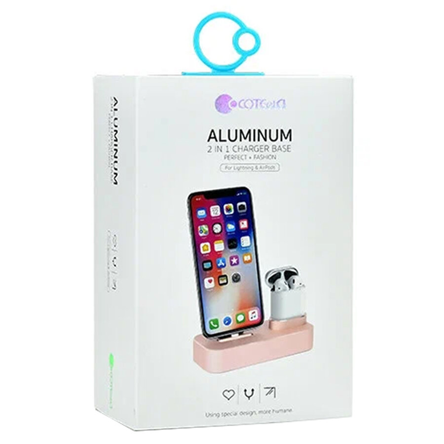 Настольная станция COTEetCI CS7205-MRG Base 22 2-in-1 + Lightning + AirPods, розовое золото