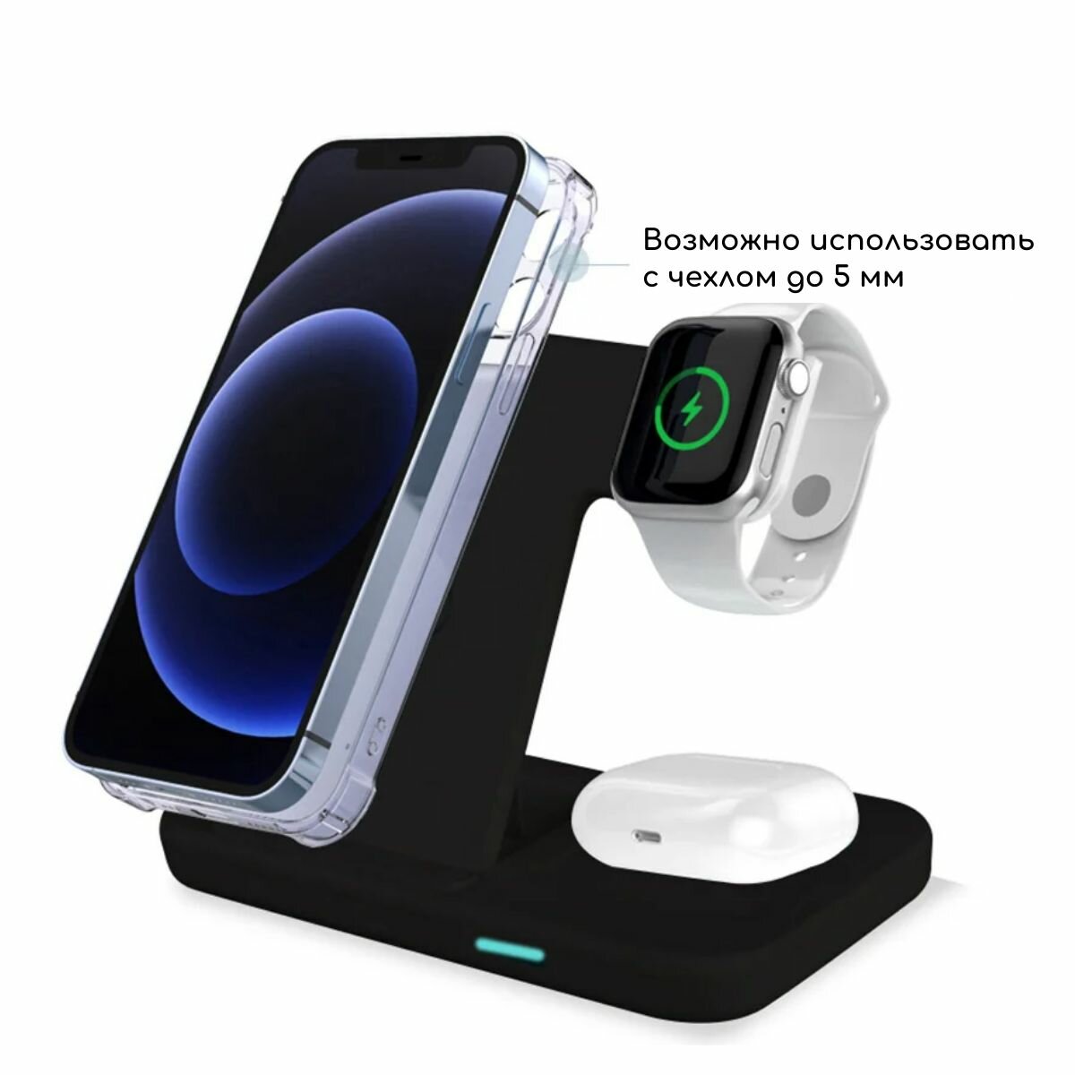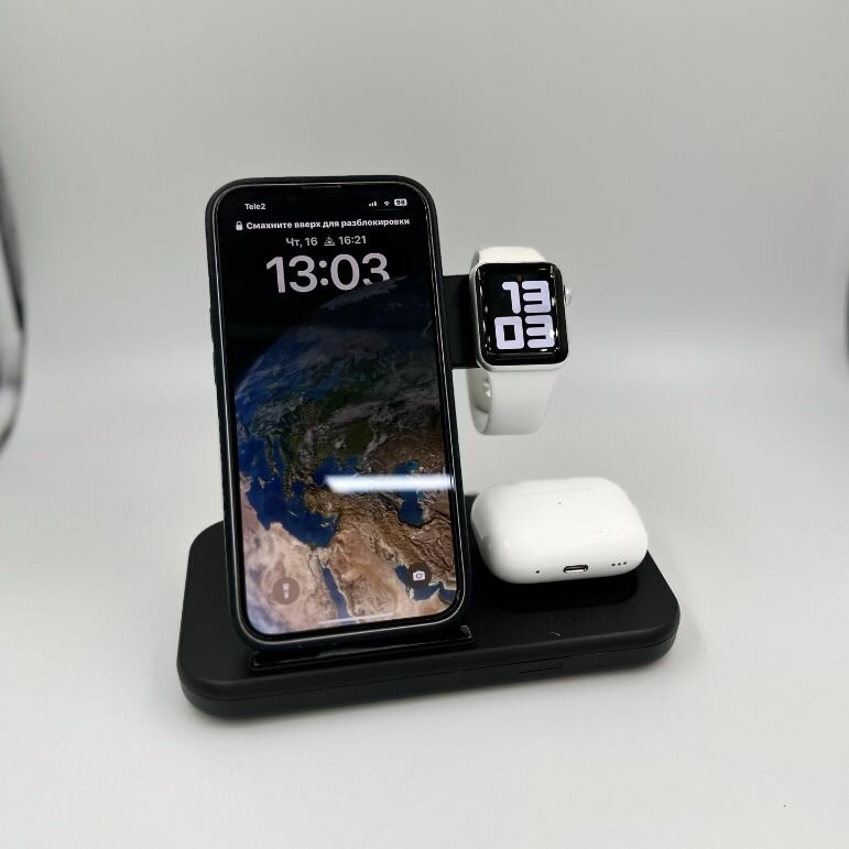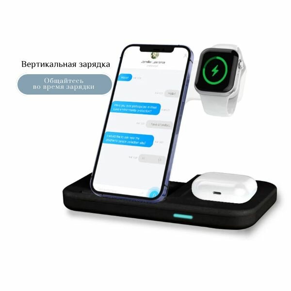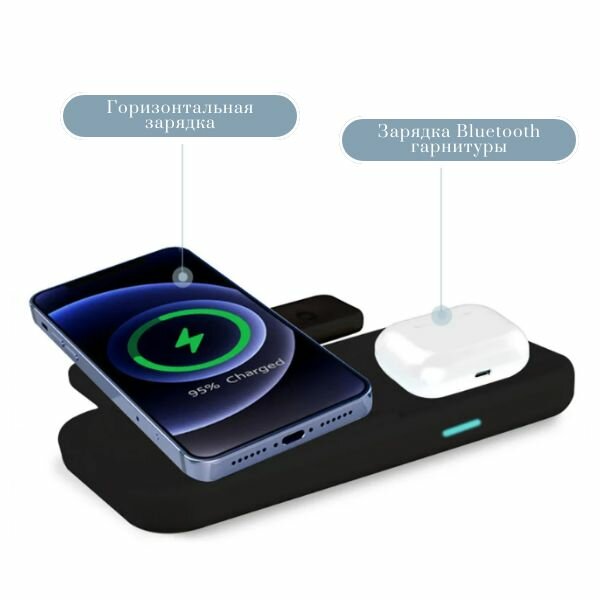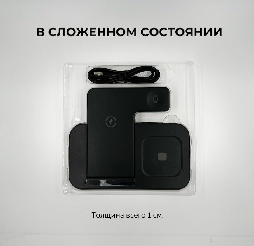 Док-станция с быстрой зарядкой Rohs 2.6-15W(QC), 3 в 1 для телефонов, наушников и часов. Цвет черный интересное: