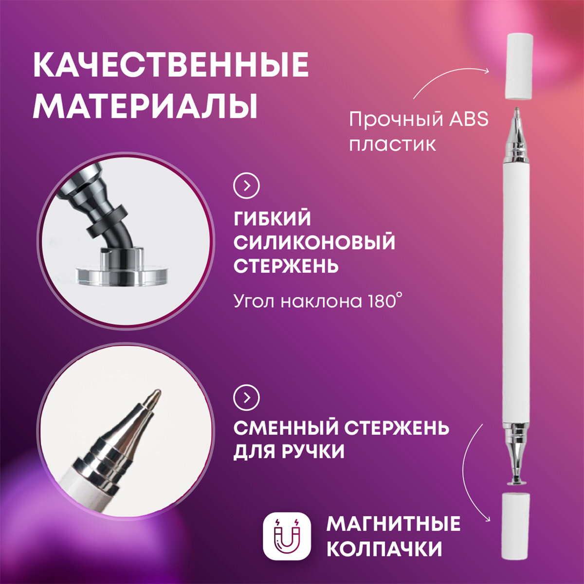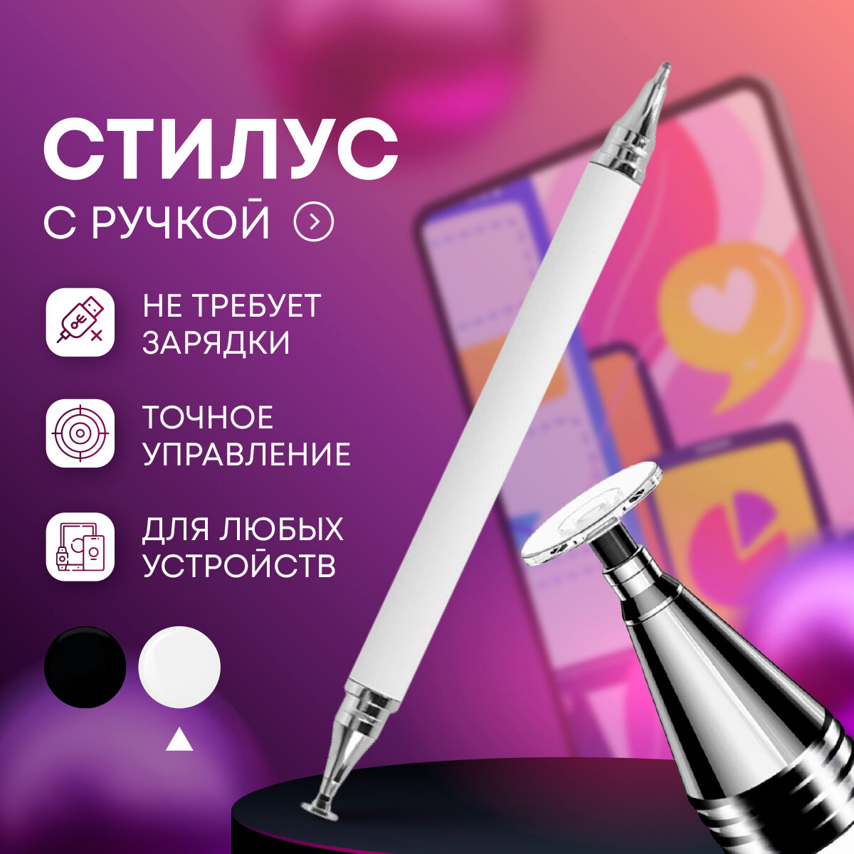 Купить Стилус для телефона/планшета 2в1 с ручкой белый