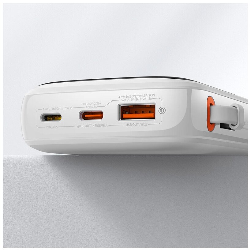 Портативный аккумулятор BASEUS Qpow Pro Digital Display, встроенный кабель Type-C, 3A, 10000 мА⋅ч, белый