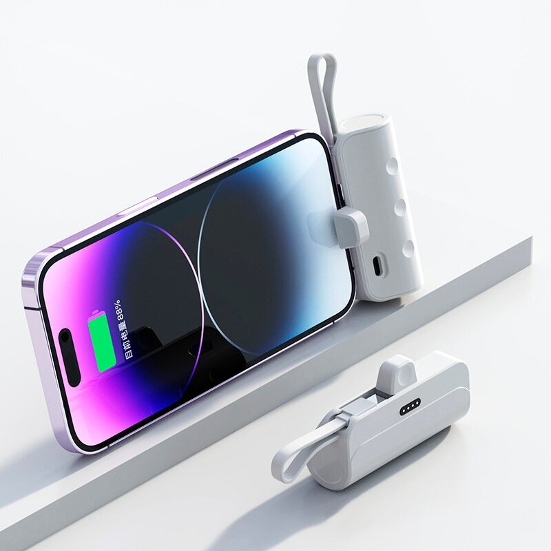 Внешний аккумулятор 2в1 5000 mAh основной Type-C и шнур lighting , Powerbank MINI (Белый)