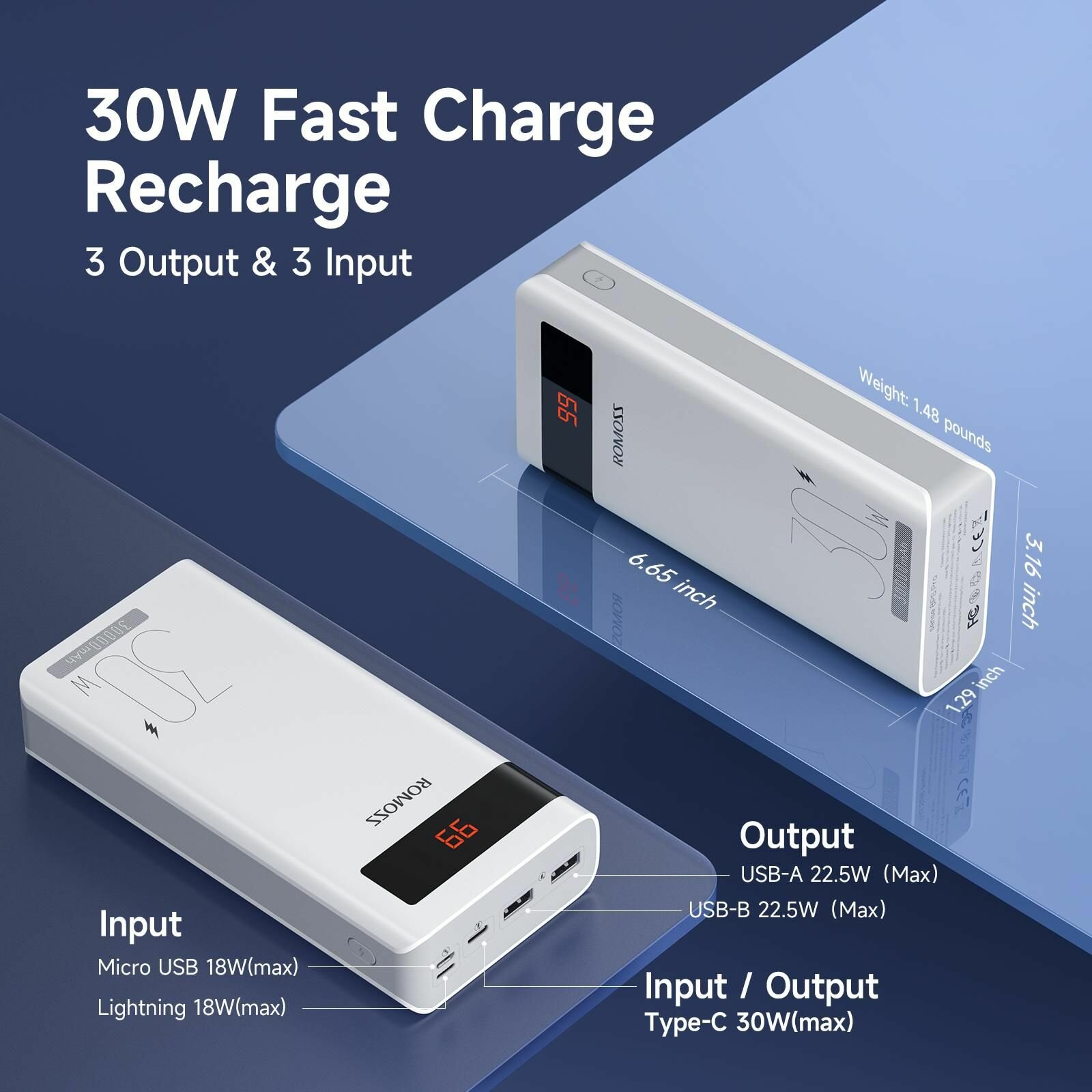 Внешний аккумулятор (Power Bank) Romoss Sense 8PS Pro 30000 mAh Быстрая зарядка LED дисплей (Белый)