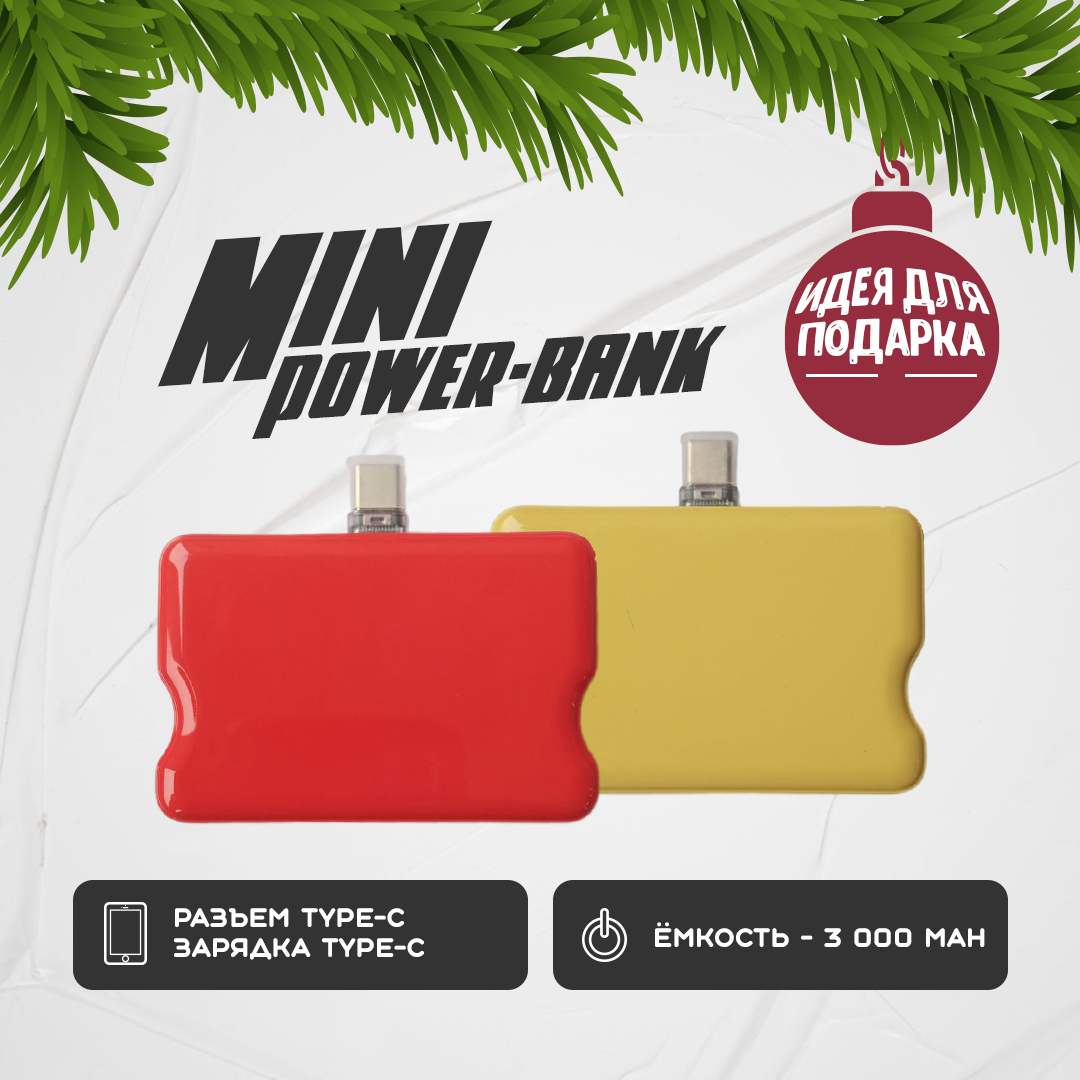 Портативный мини-Powerbank Type-C. Внешний аккумулятор для зарядки. 3000 mAh, 1.2 А. Цвет - красный интересное: