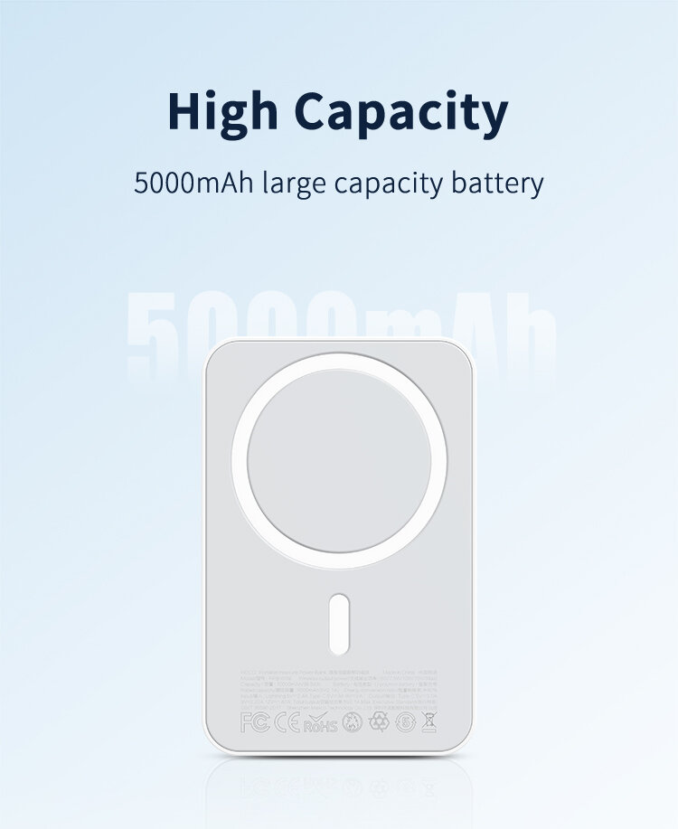 Купить Магнитный беспроводной аккумулятор RECCI Magnetic for Magsafe 15W, 5000 mAh, PD20W, Белый