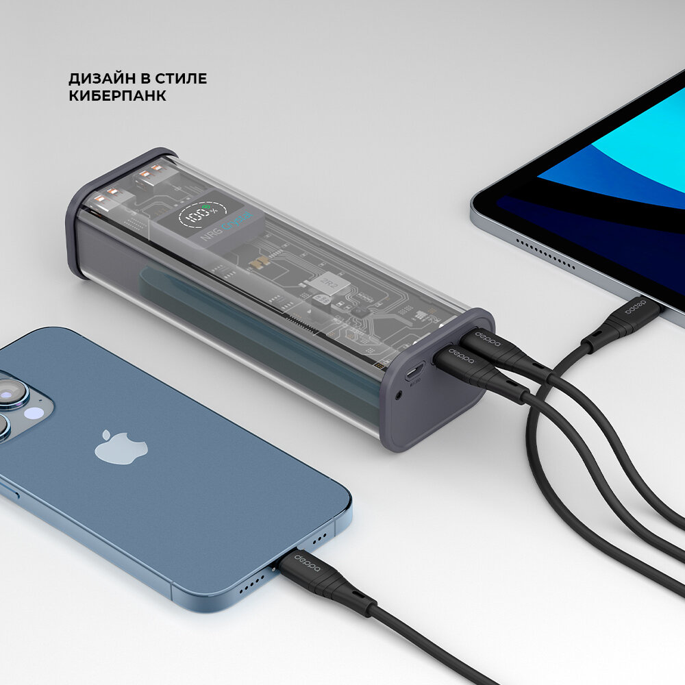 Внешний аккумулятор Deppa , NRG Turbo TR 20000 mAh, 22.5W out (QC, PD, AFC, FCP, SCP, MTK PE), прозрачный