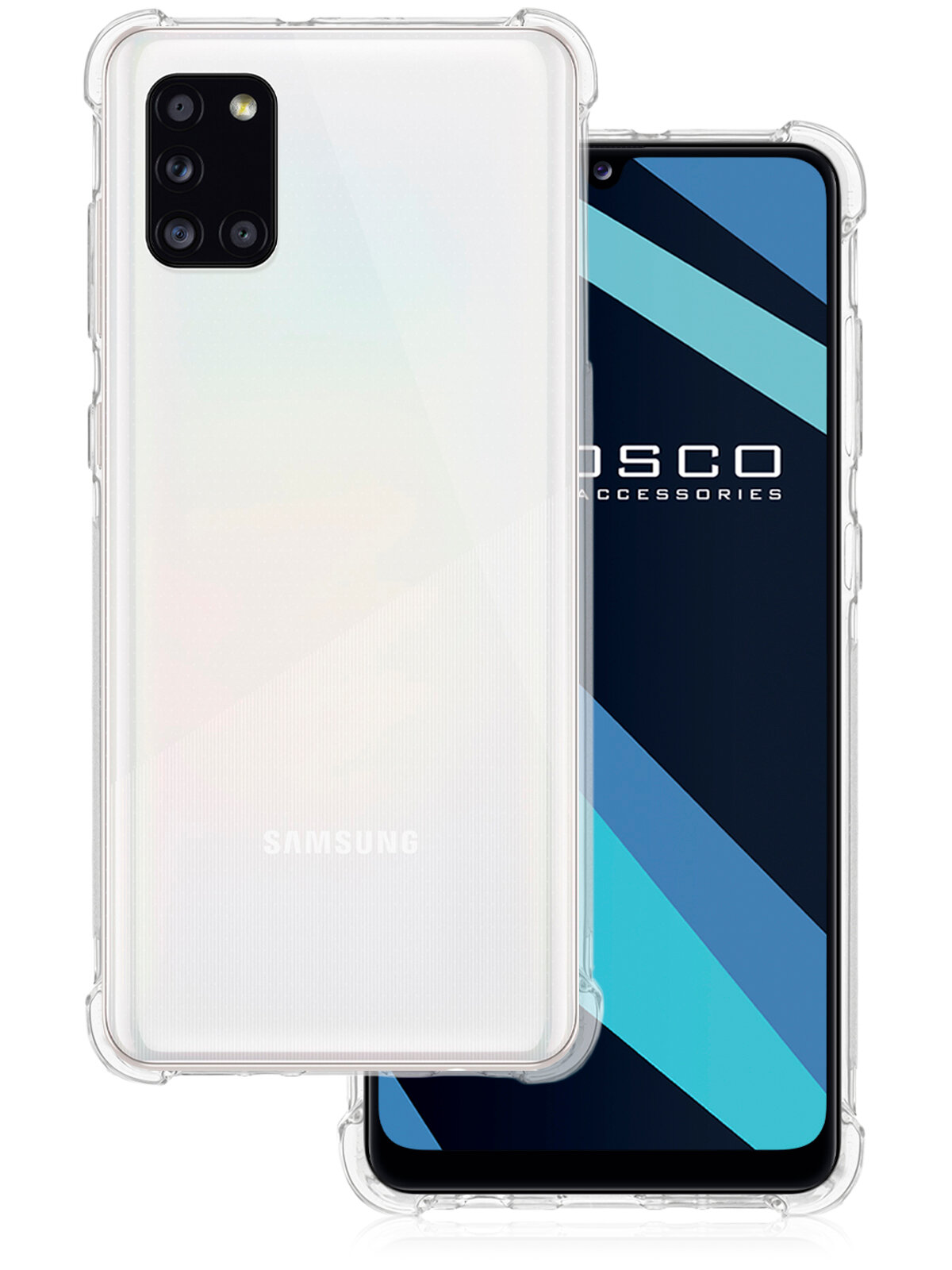 Противоударный силиконовый чехол Rosco на Samsung Galaxy A31 (Самсунг Галакси А31), прозрачный