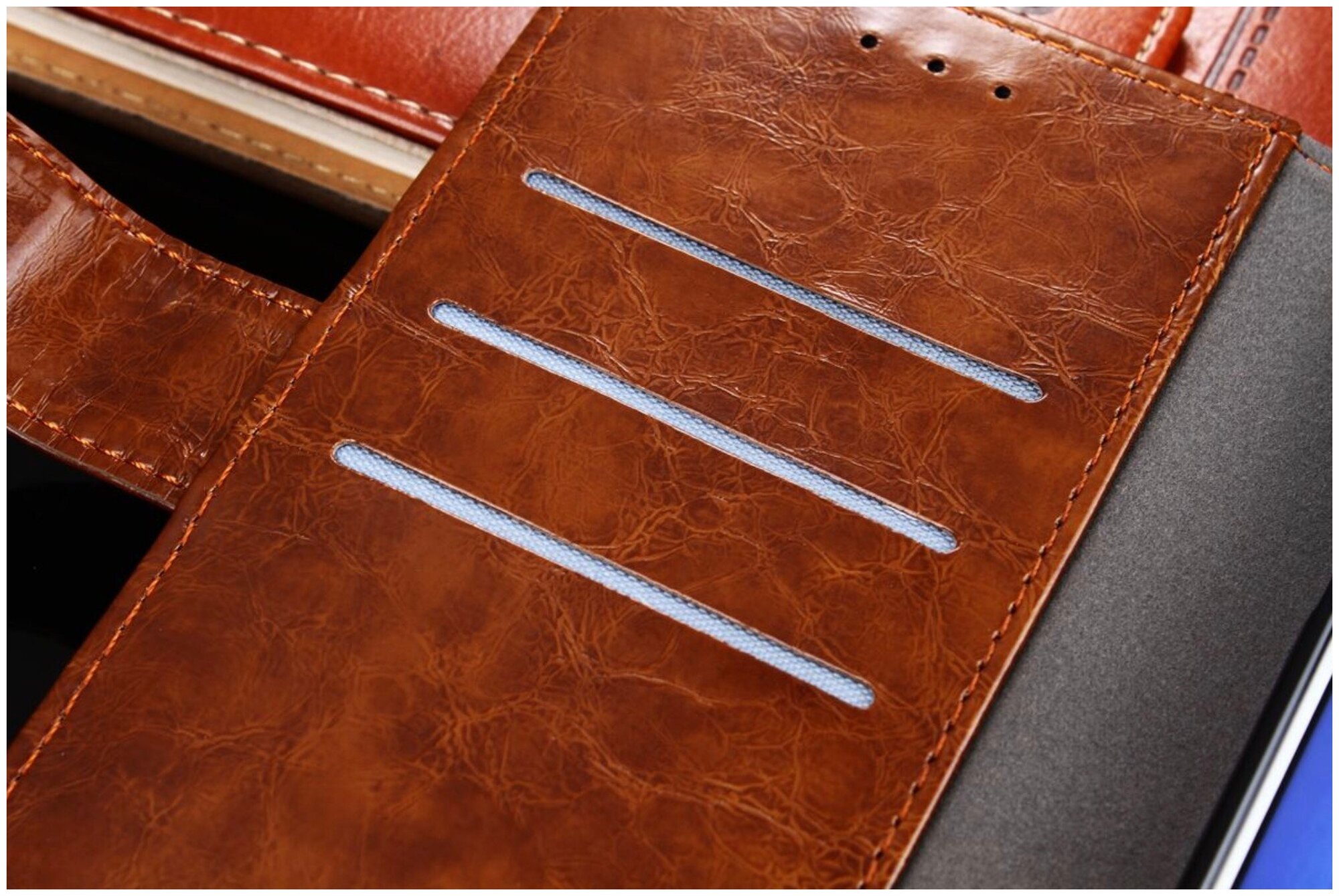 Чехол-книжка Чехол.ру для Meizu M6 (M711Q) прошитый по контуру с необычным геометрическим швом коричневый интересное:
